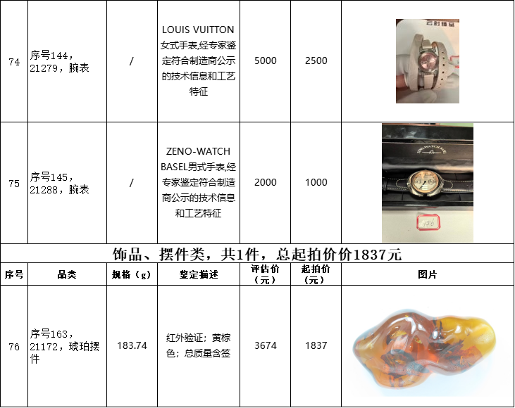 附件:《翡翠、珠宝、腕表等名贵藏品拍卖清单》