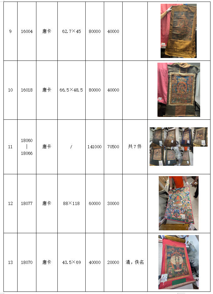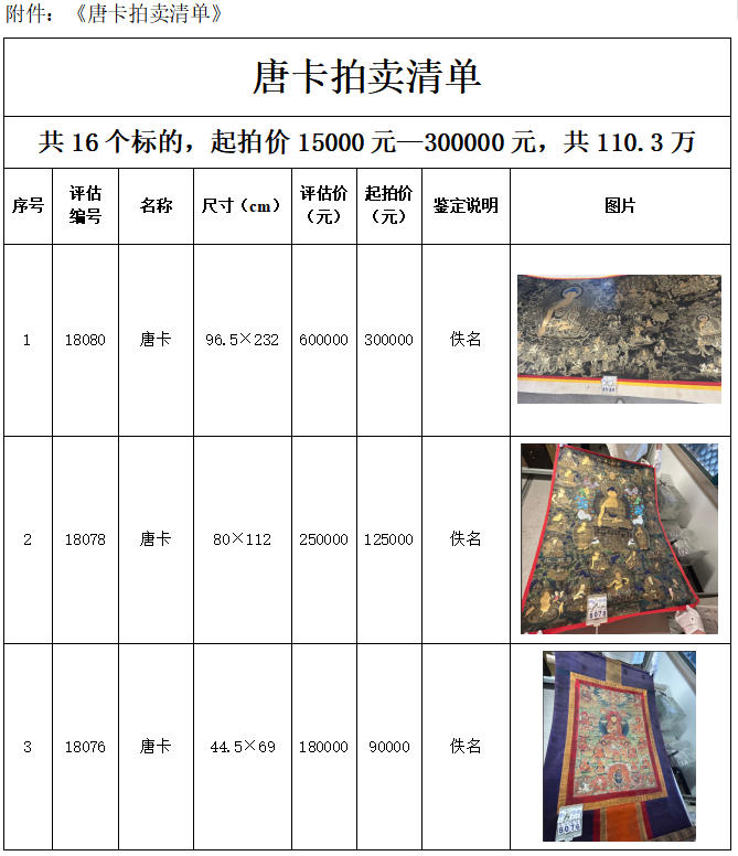 受委托,本公司将于2025年11月11日9时-11时(延时除外)在诚拍网拍卖平台(https://www.chengpw.com/)举行唐卡拍卖会,拍卖标的为一批金融机构抵债的唐卡。现将有关事项公告如下: