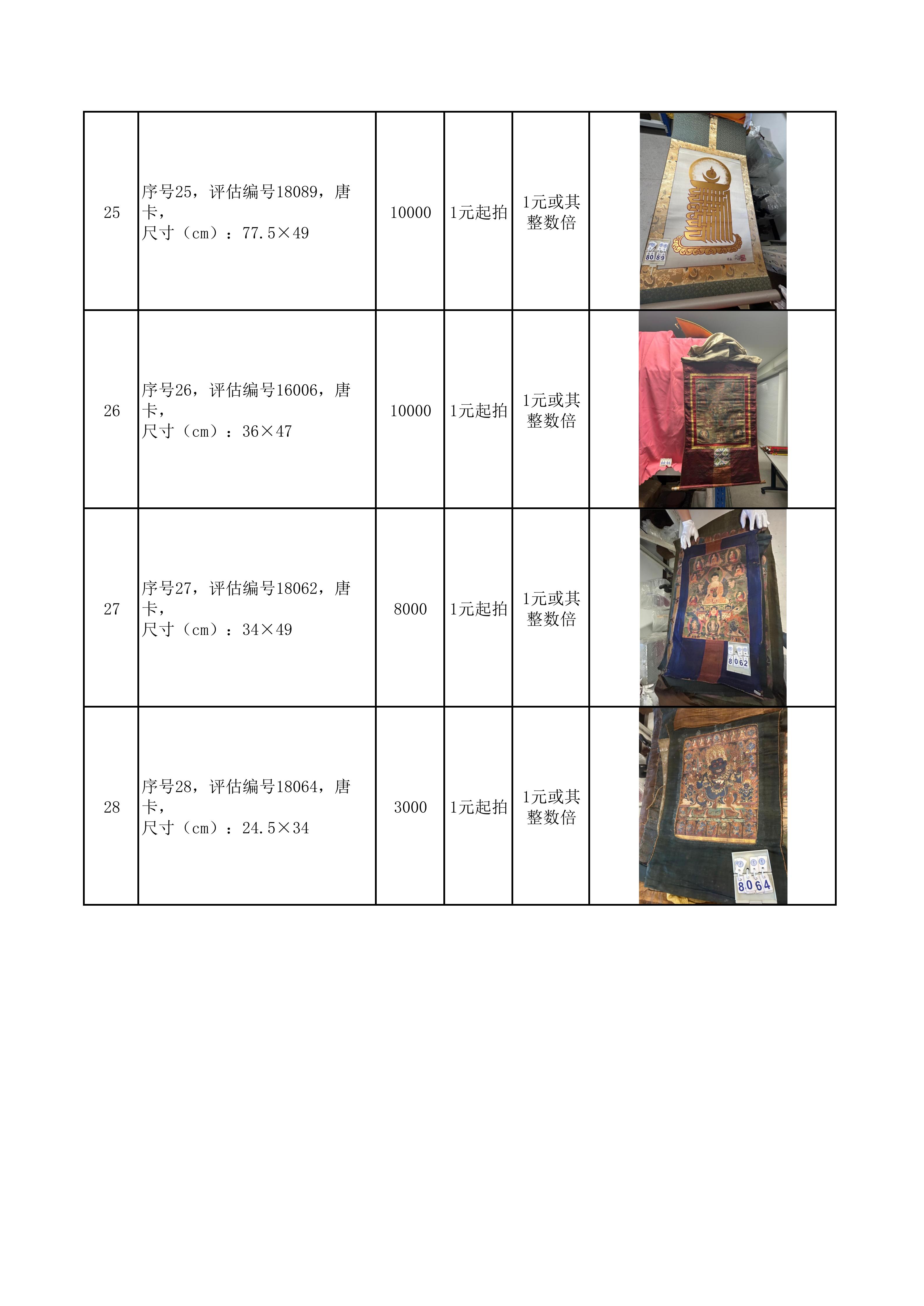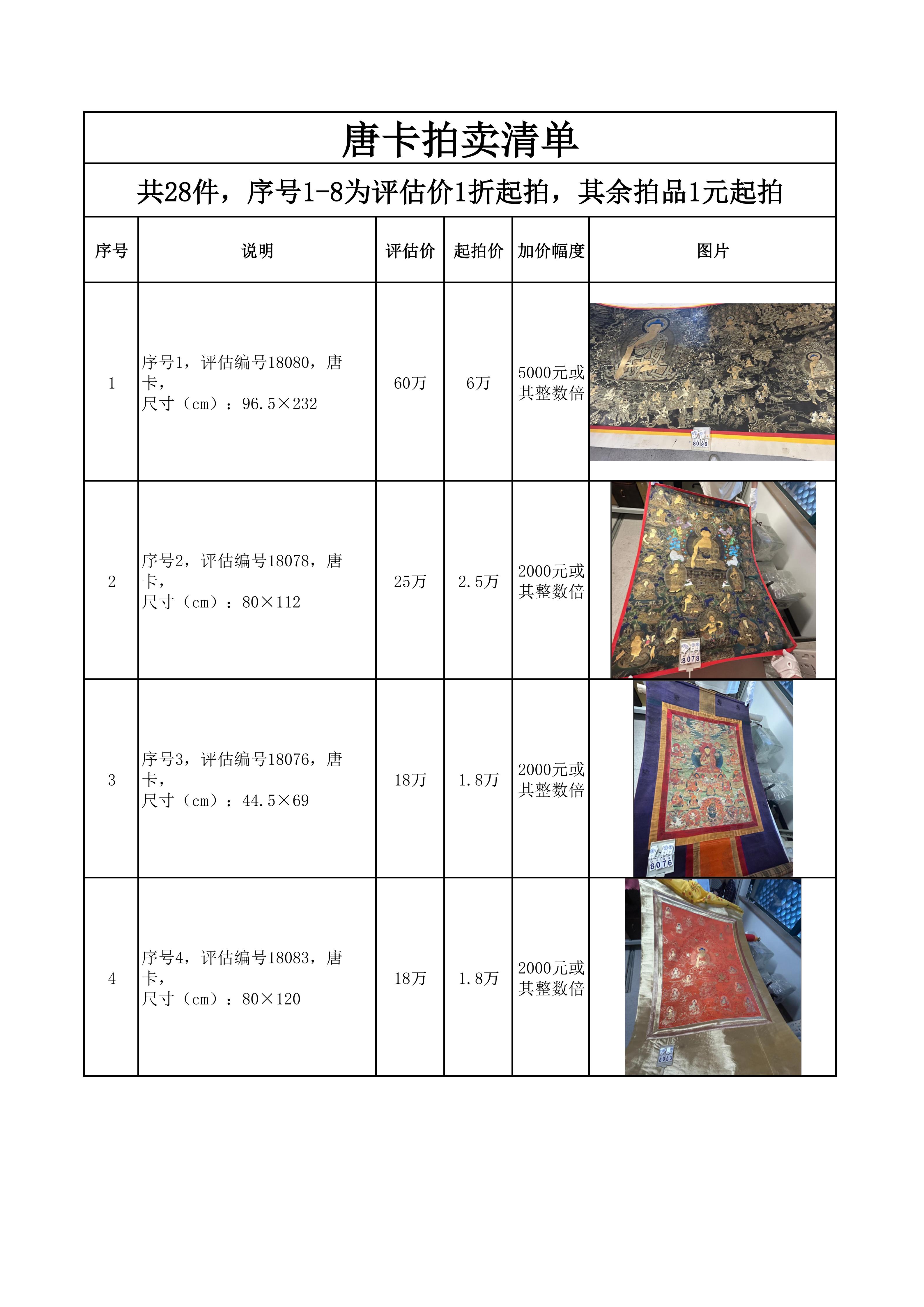 本次拍卖标的为唐卡,详见《唐卡拍卖清单》,并在诚拍网拍卖平台(https://www.chengpw.com/)上下载。