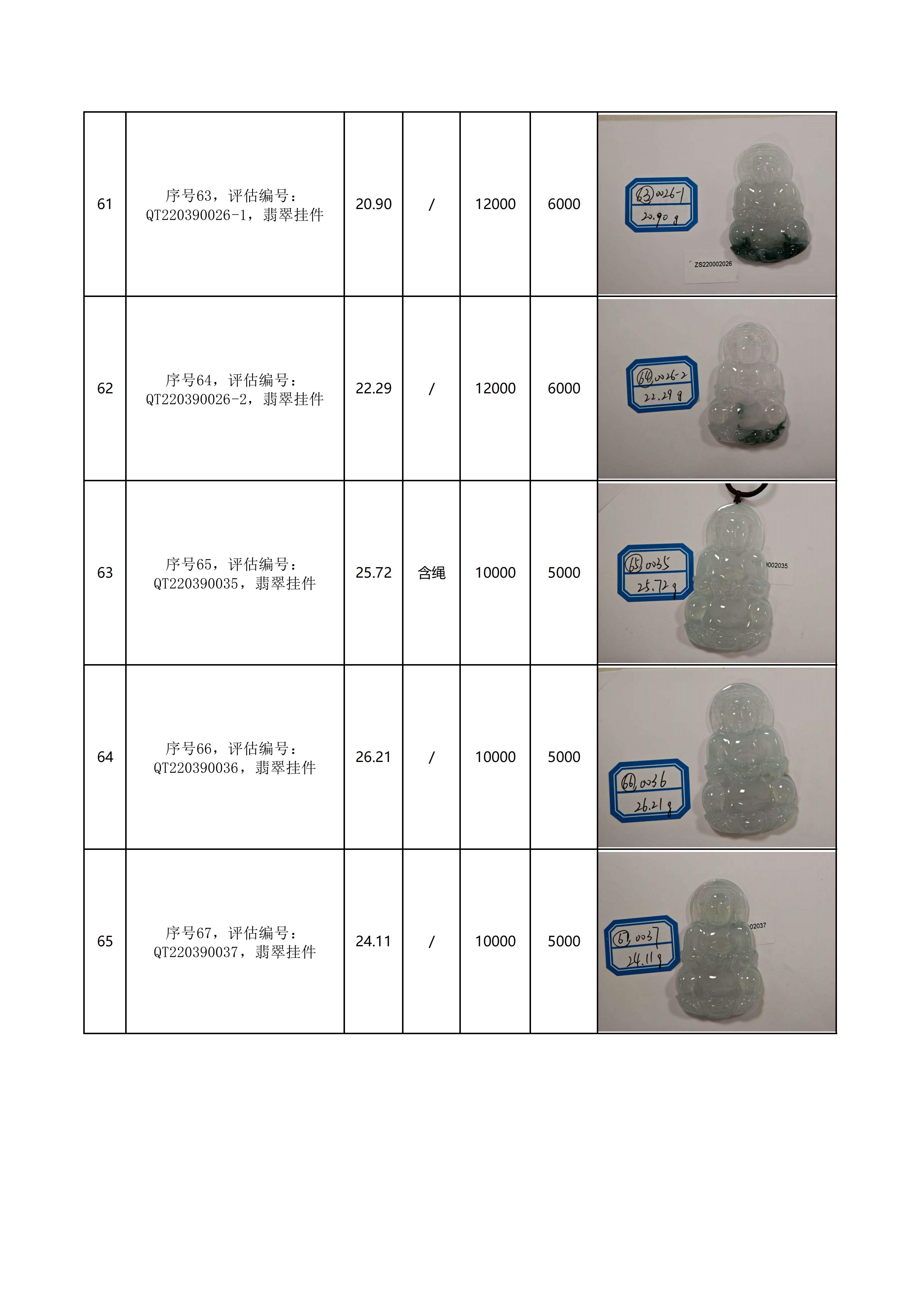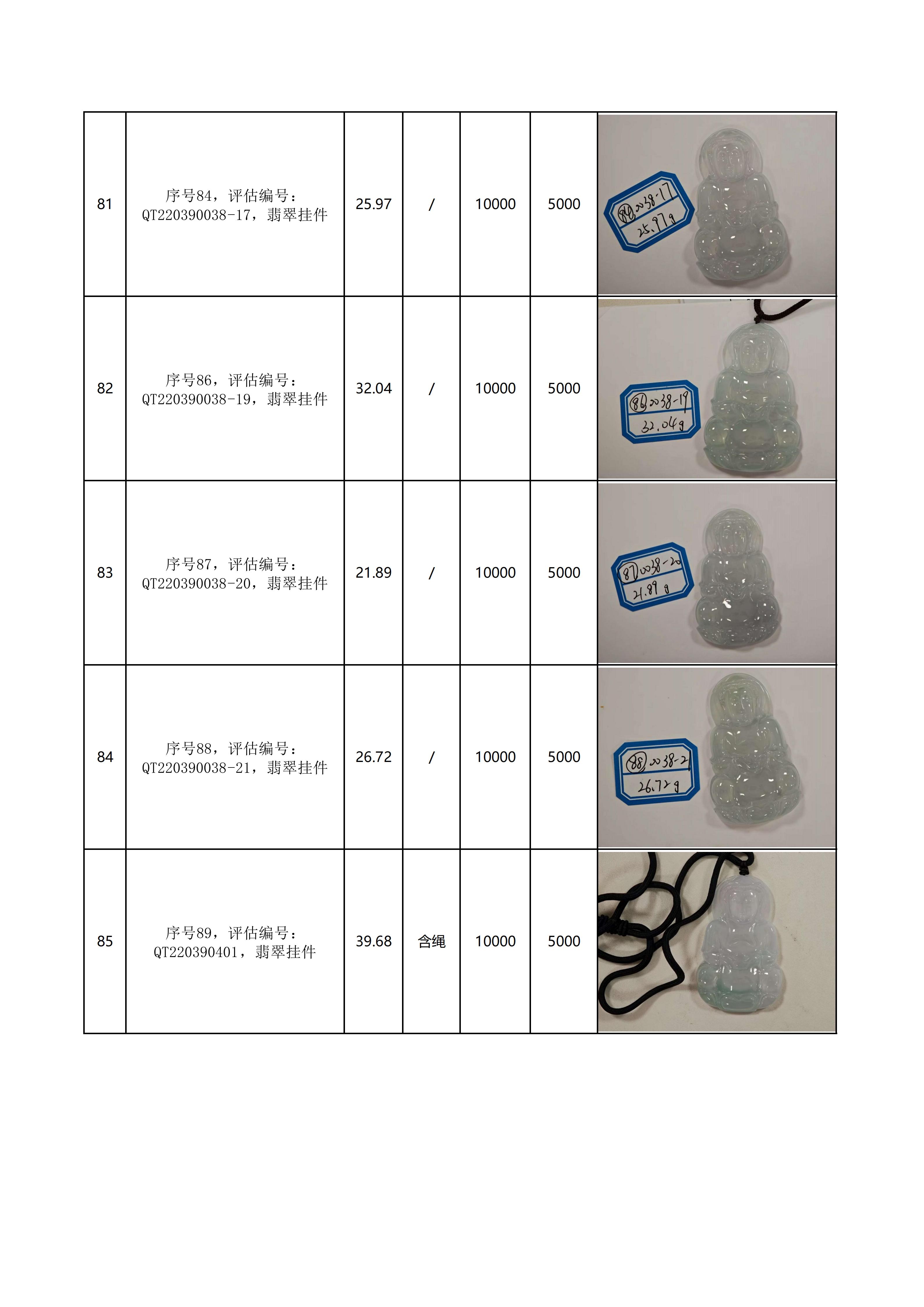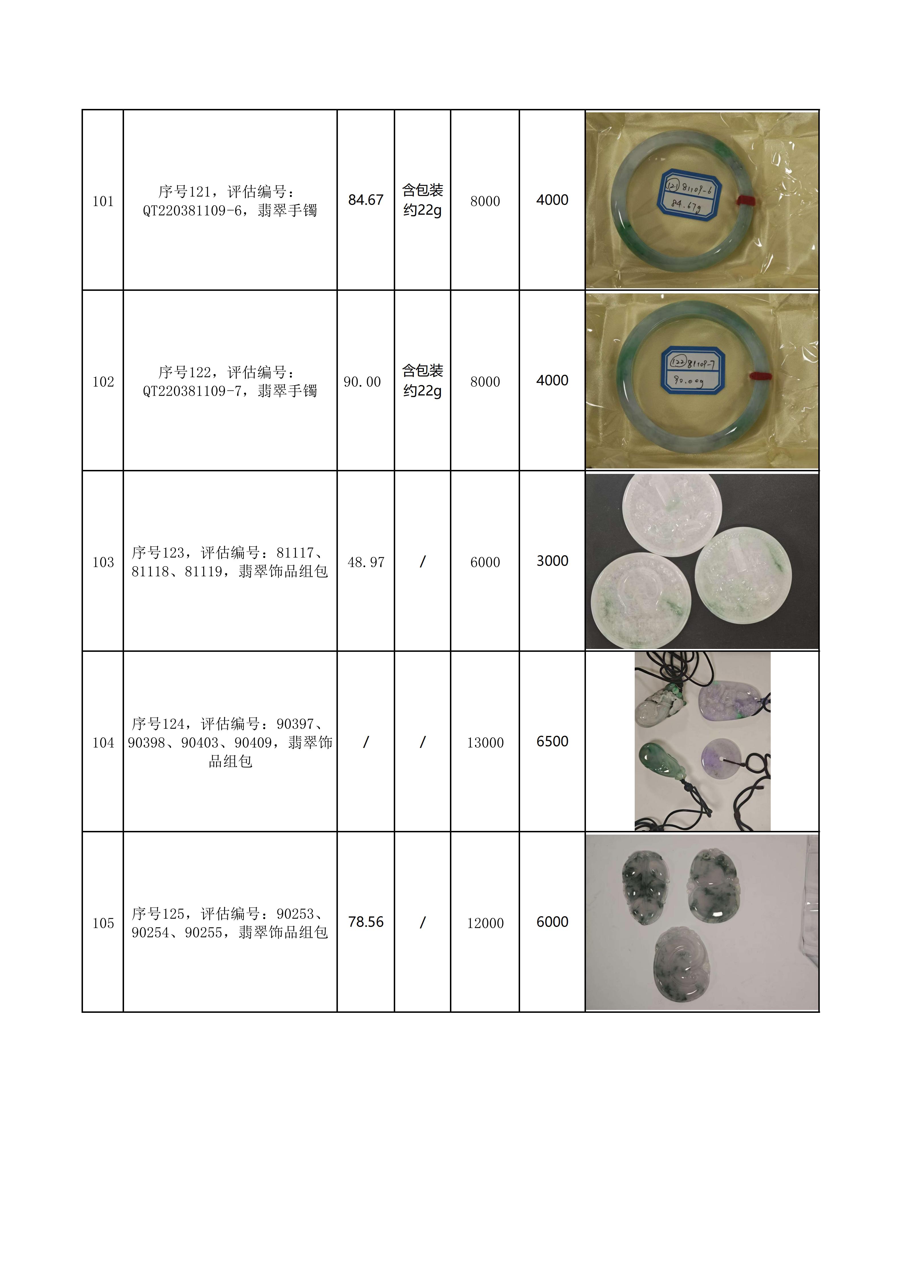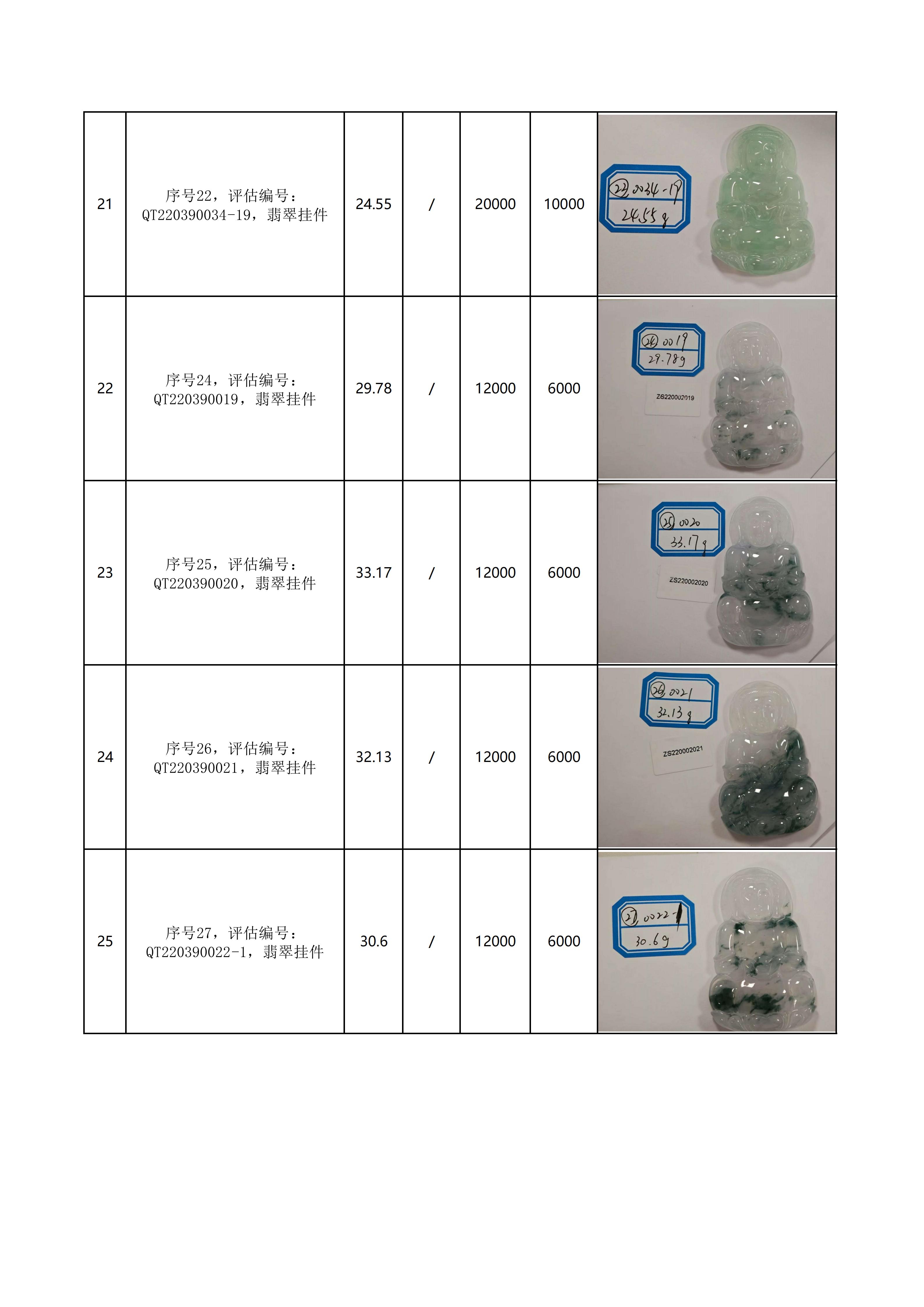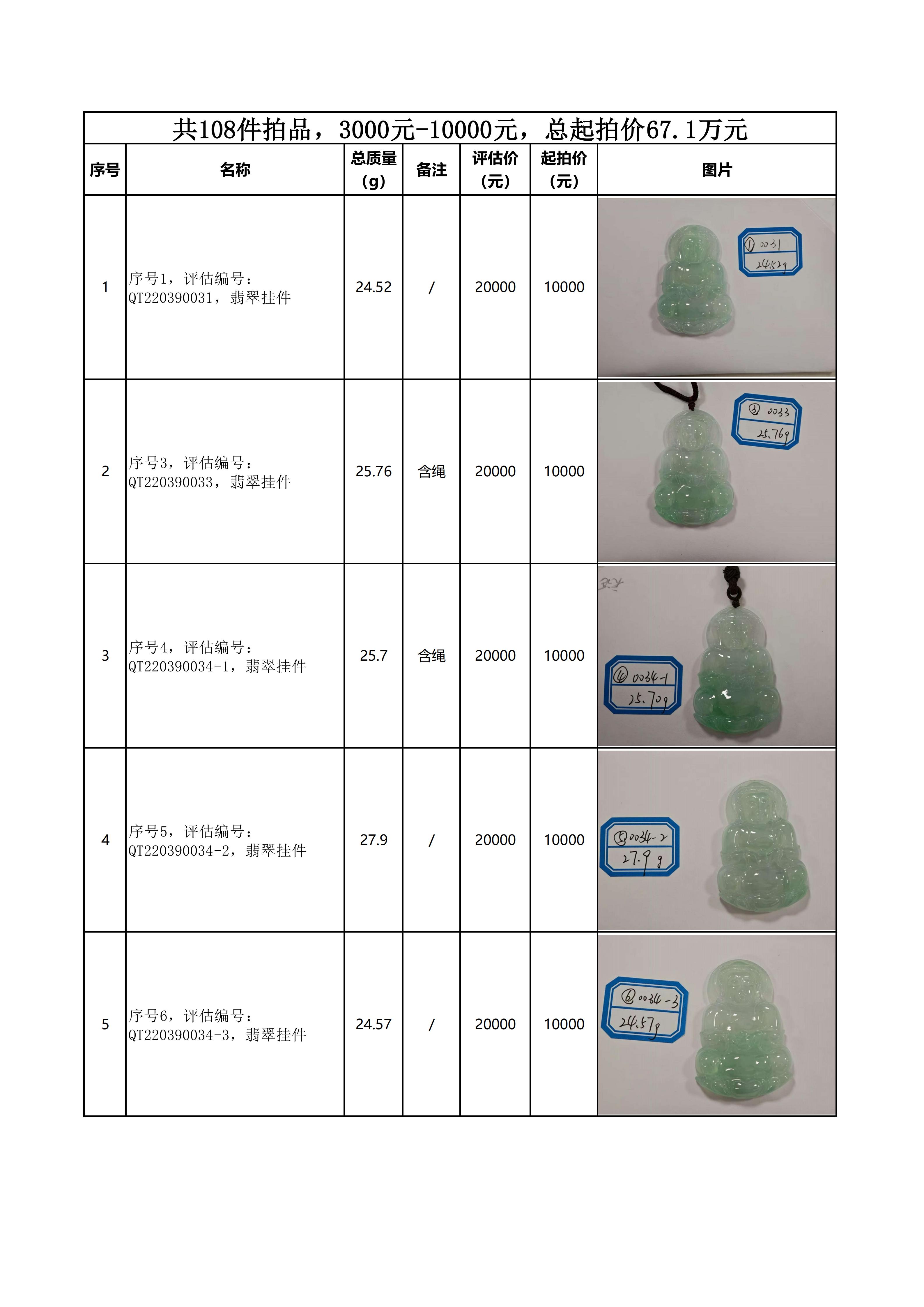 附件:《翡翠饰品拍卖清单》