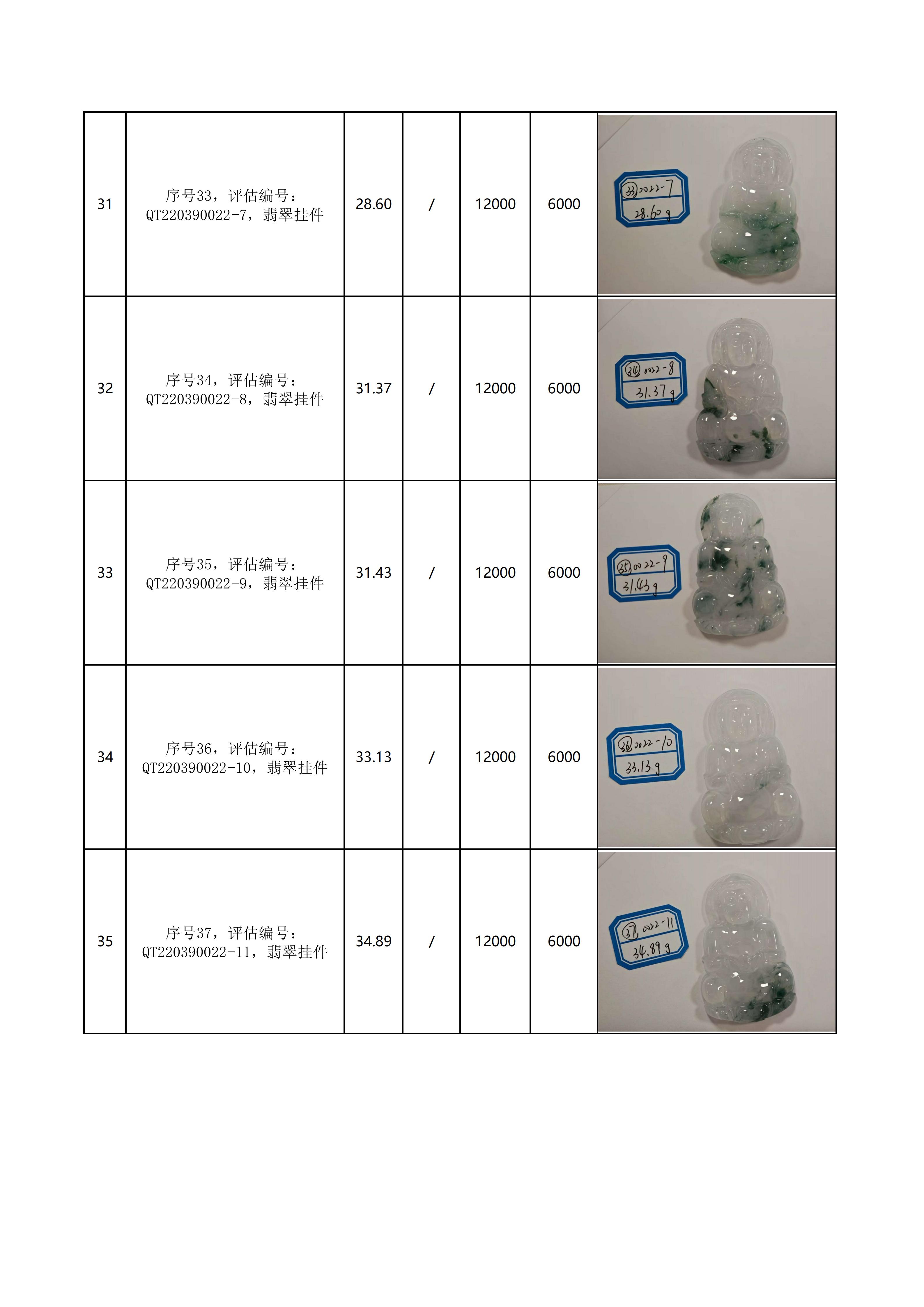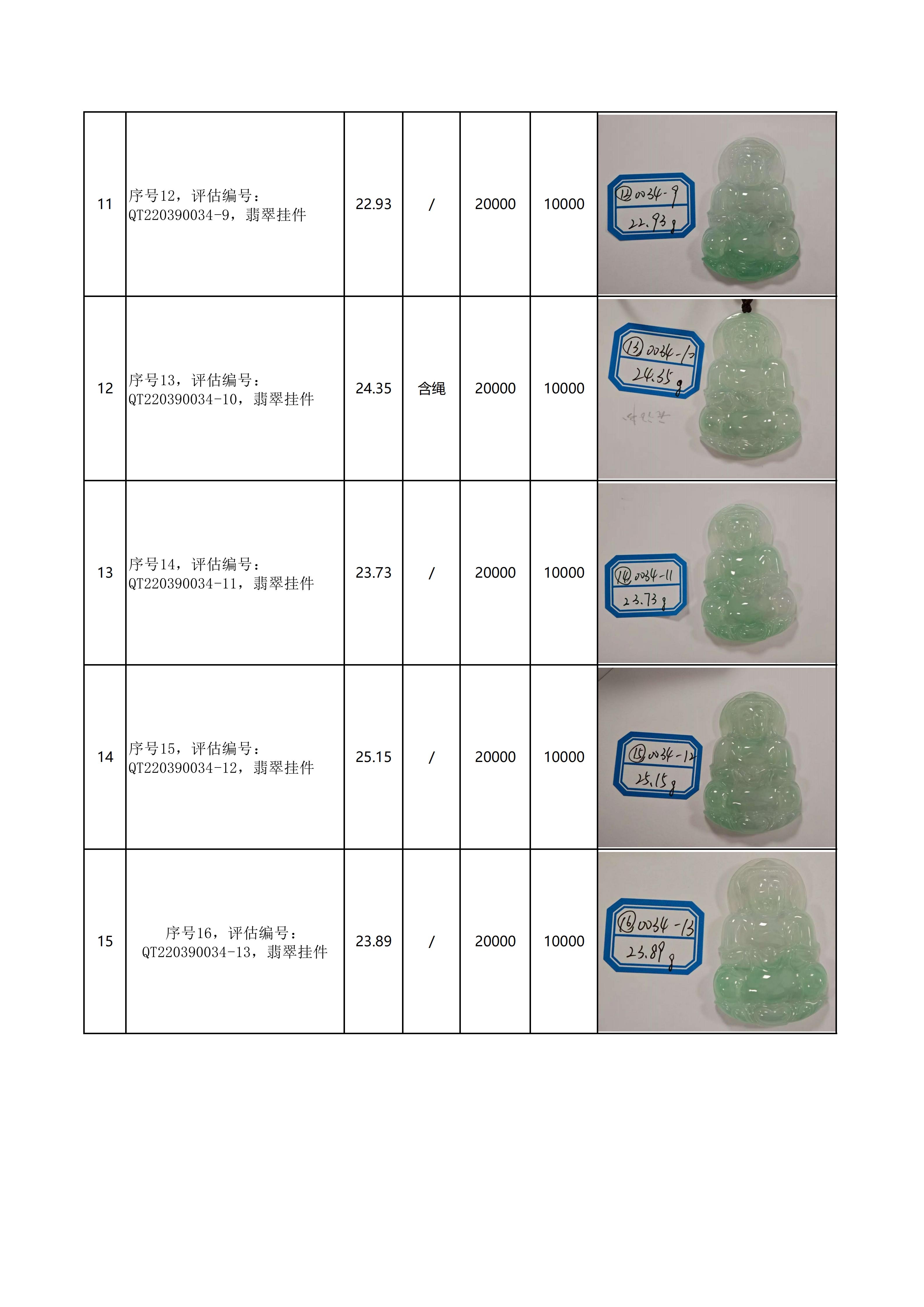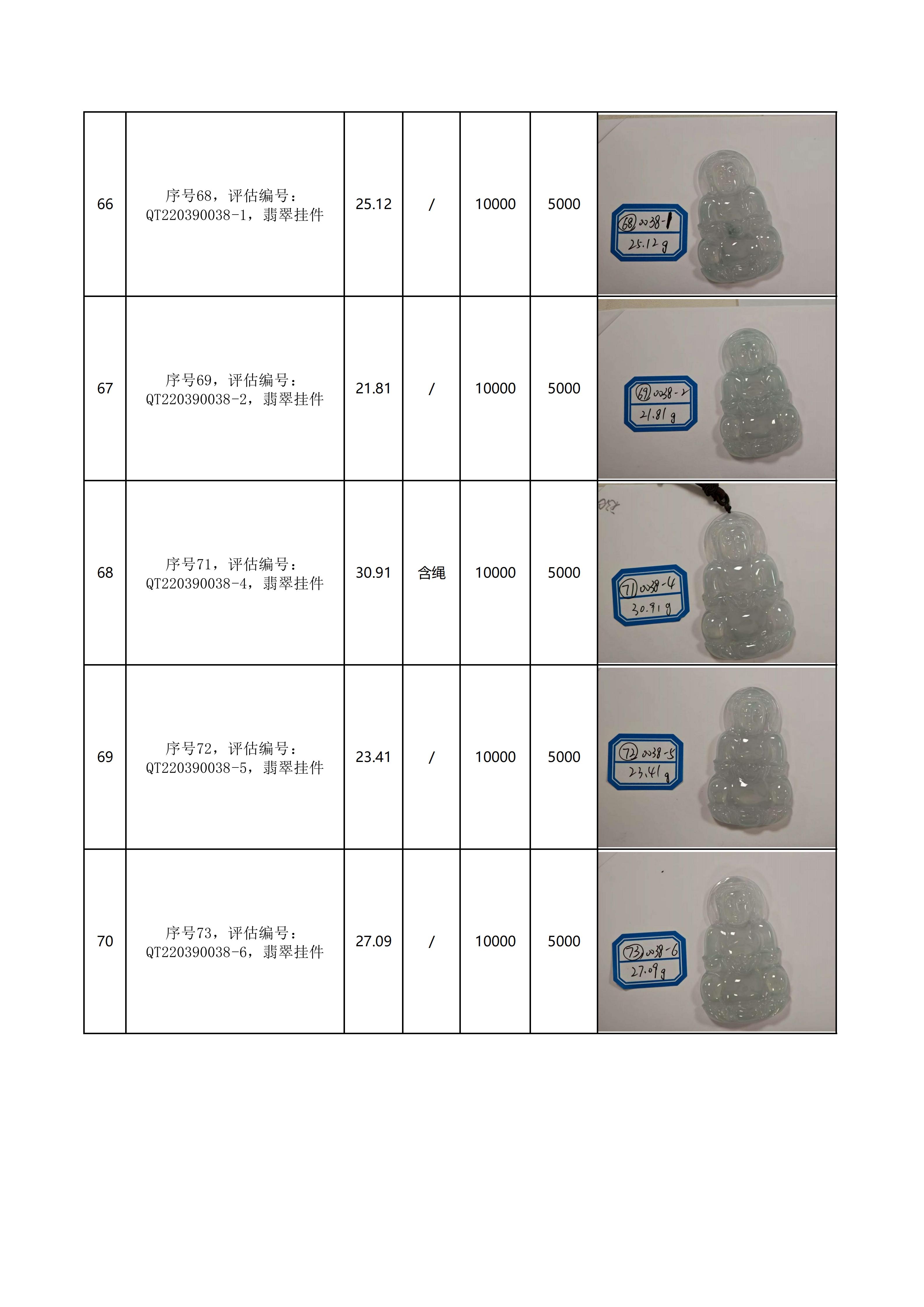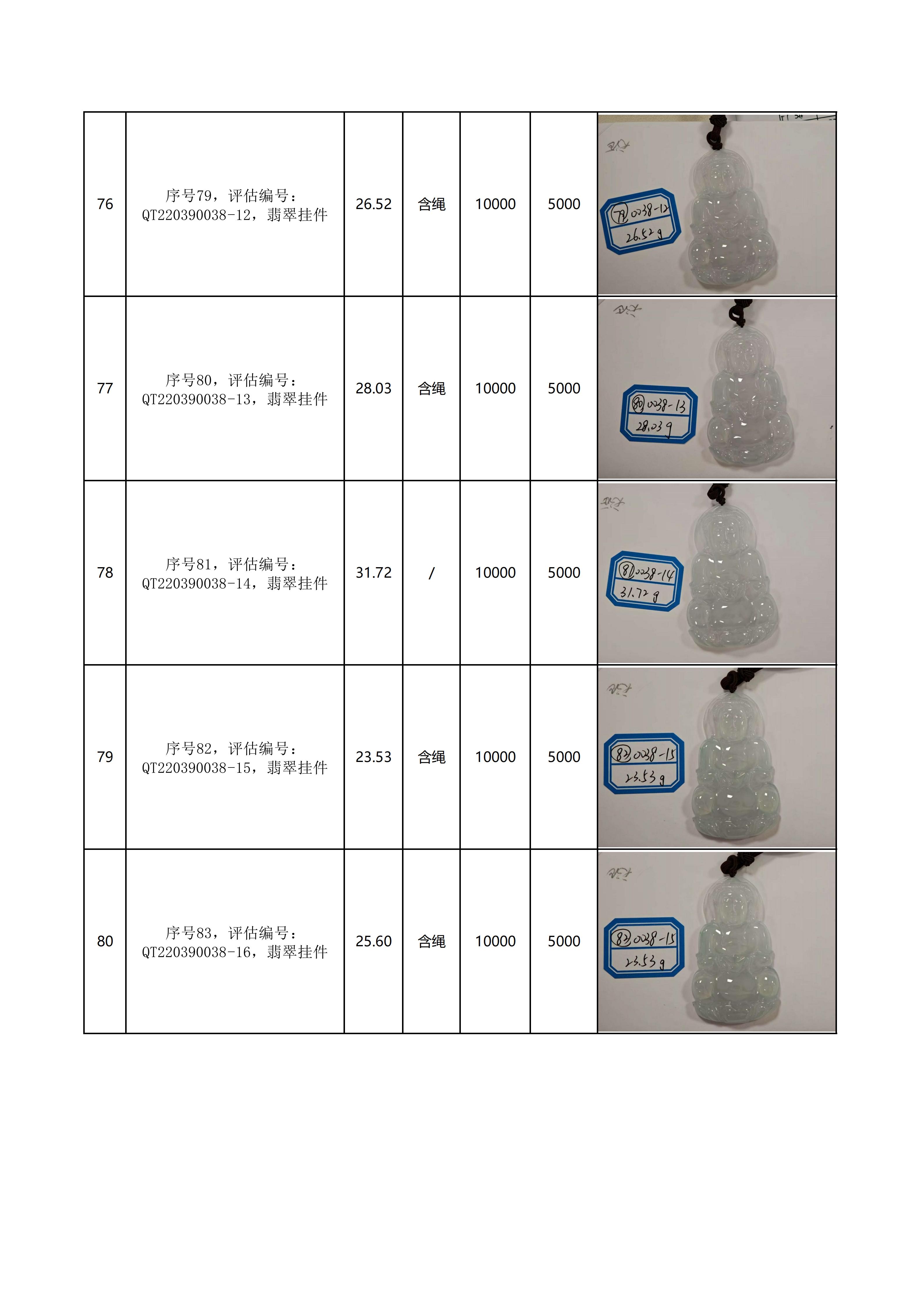 附件:《翡翠饰品拍卖清单》