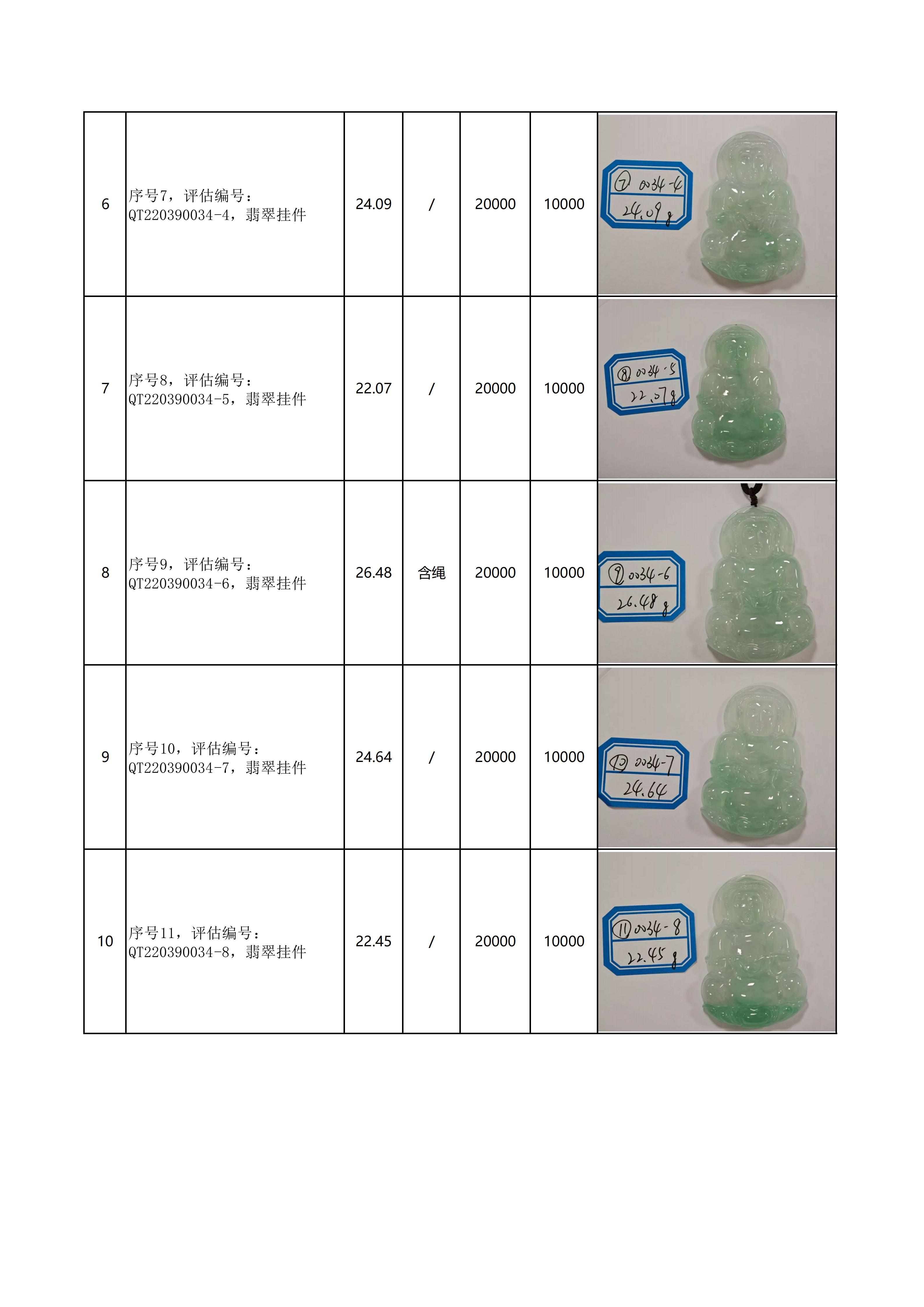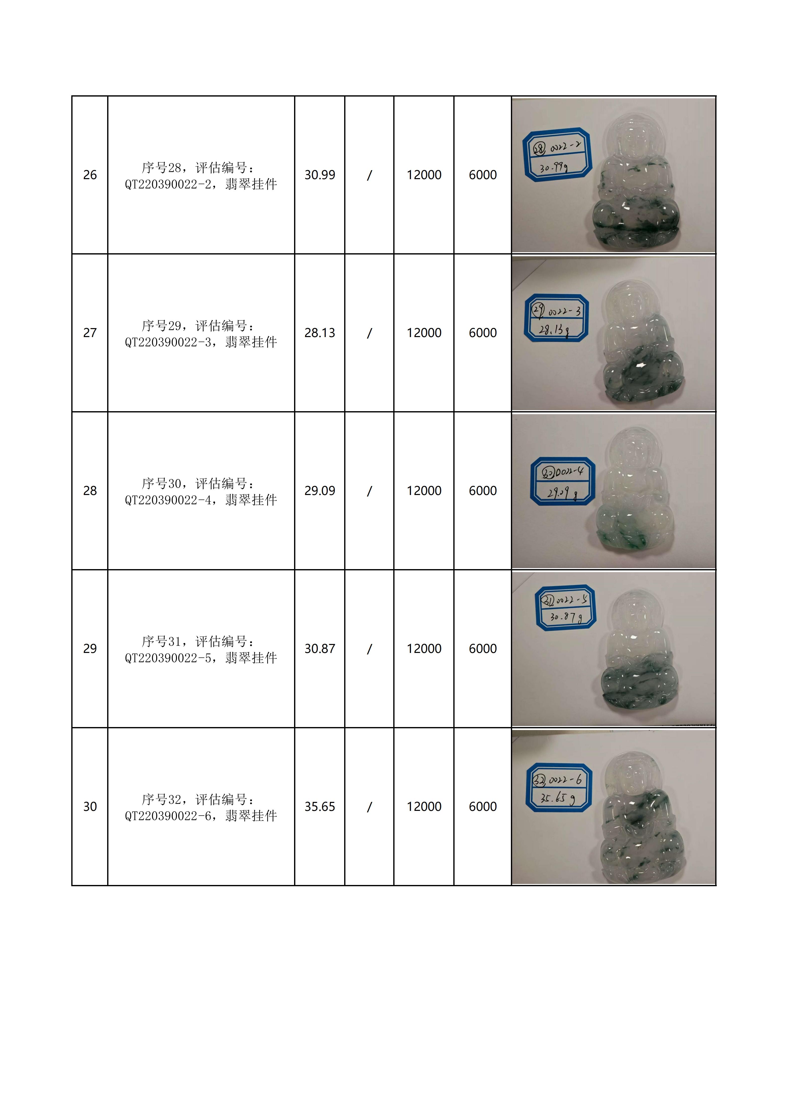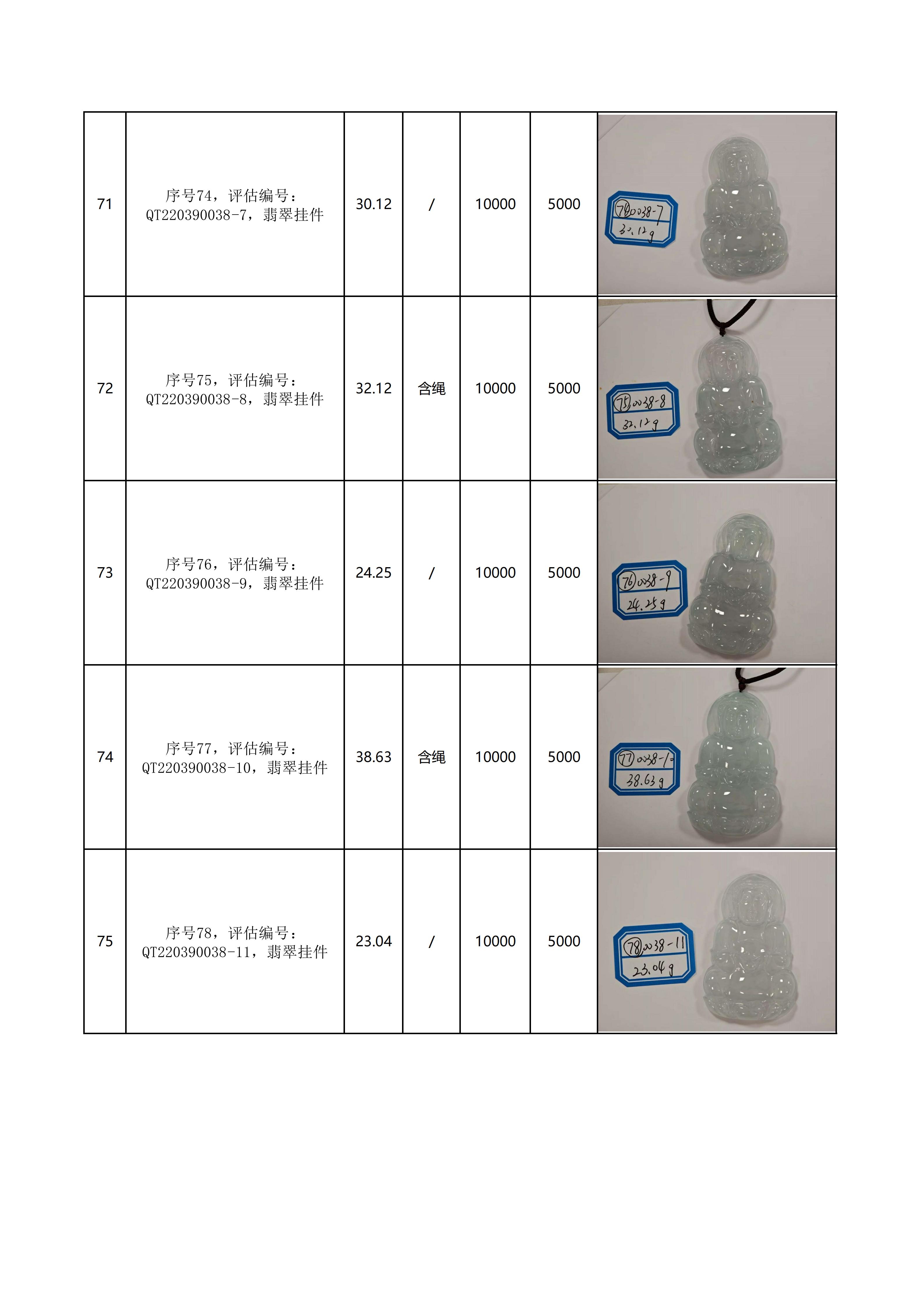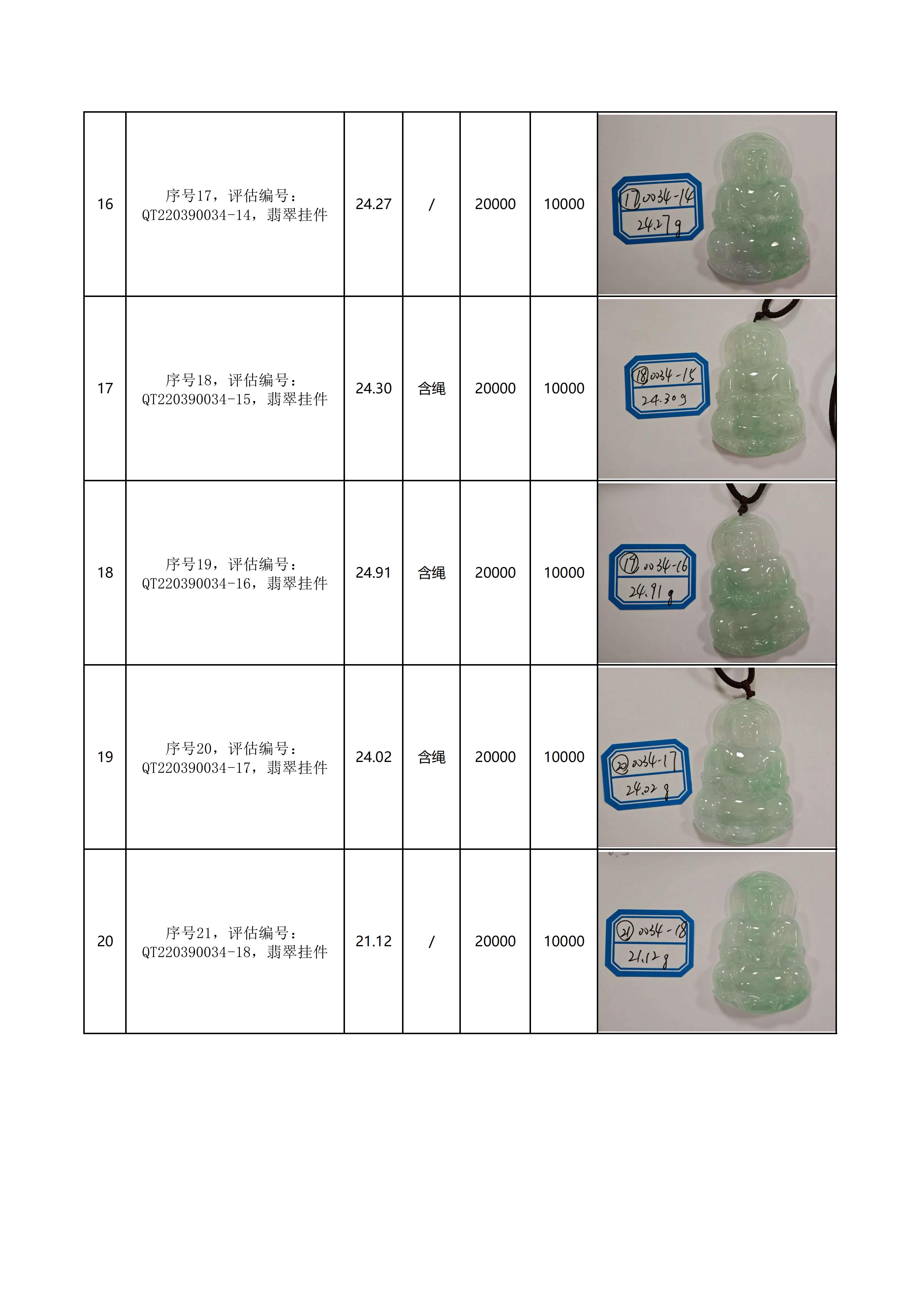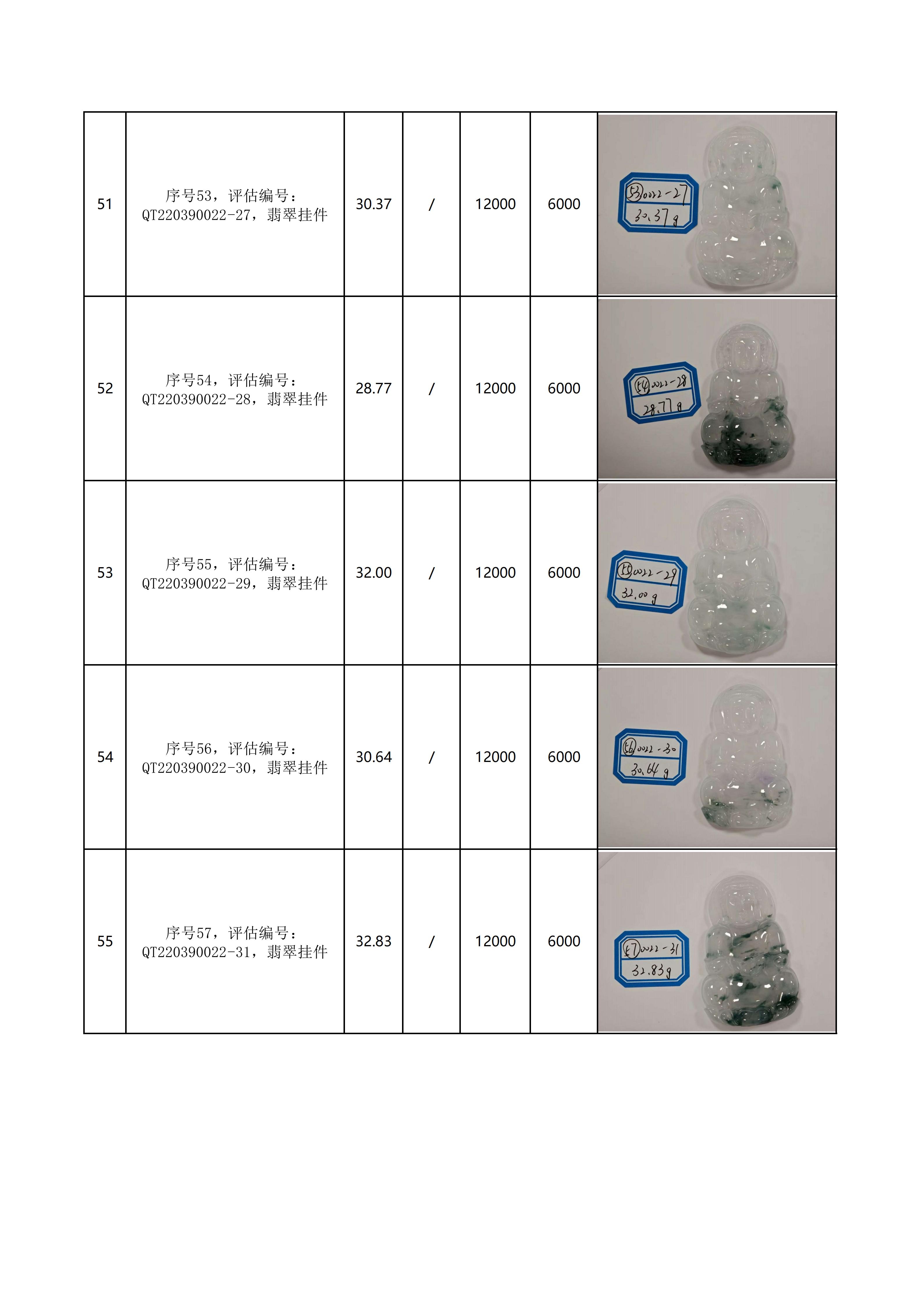 附件:《翡翠饰品拍卖清单》