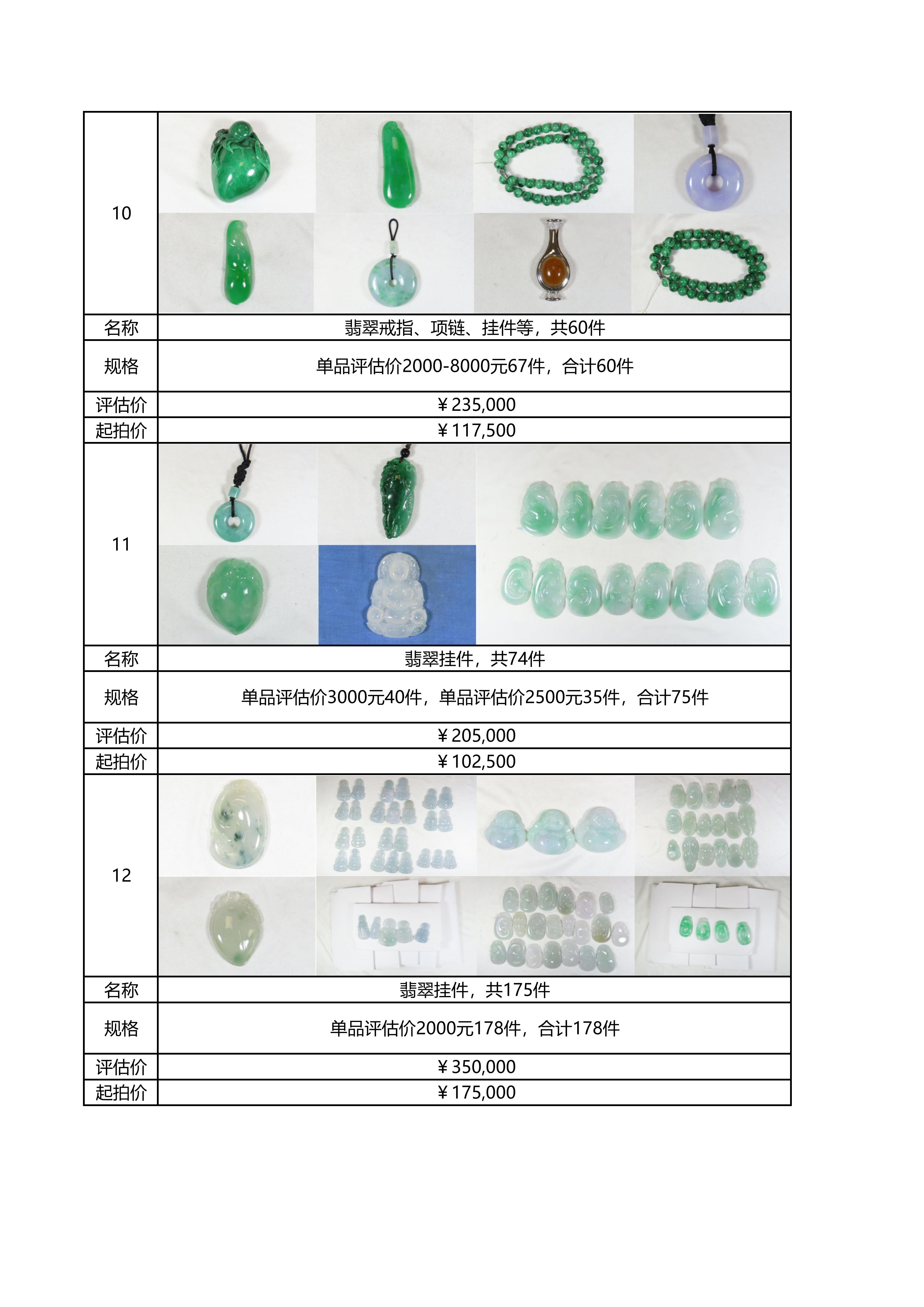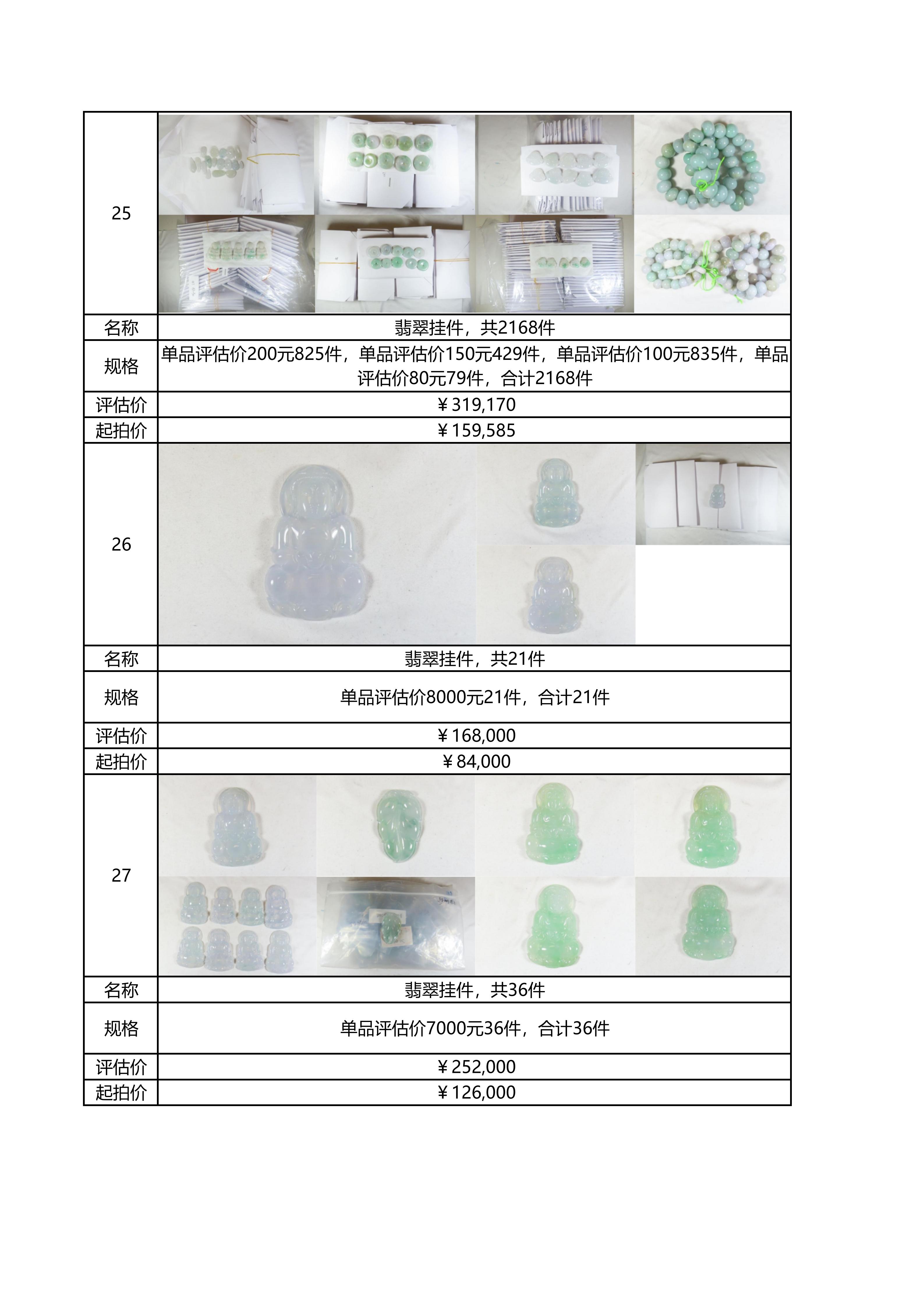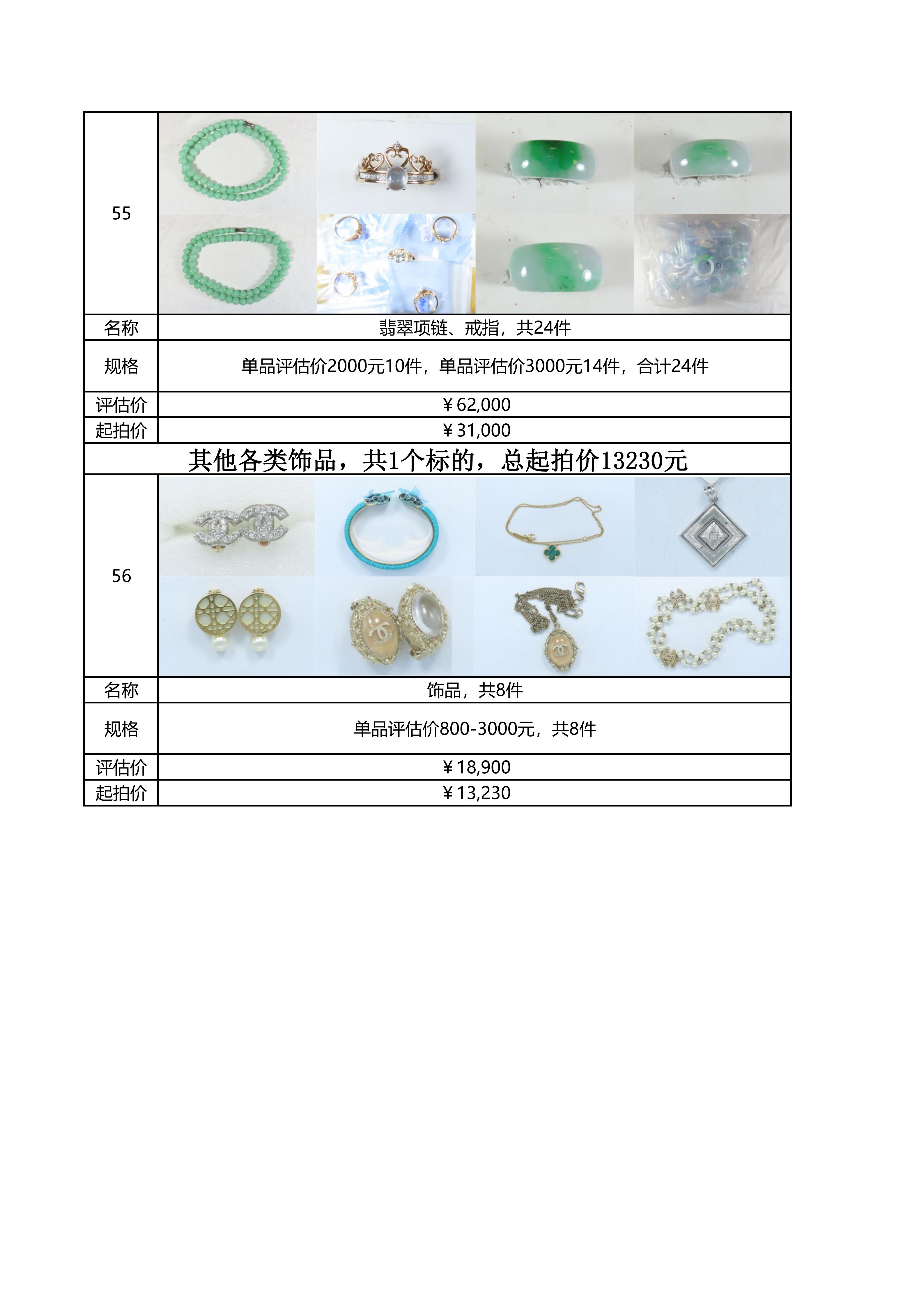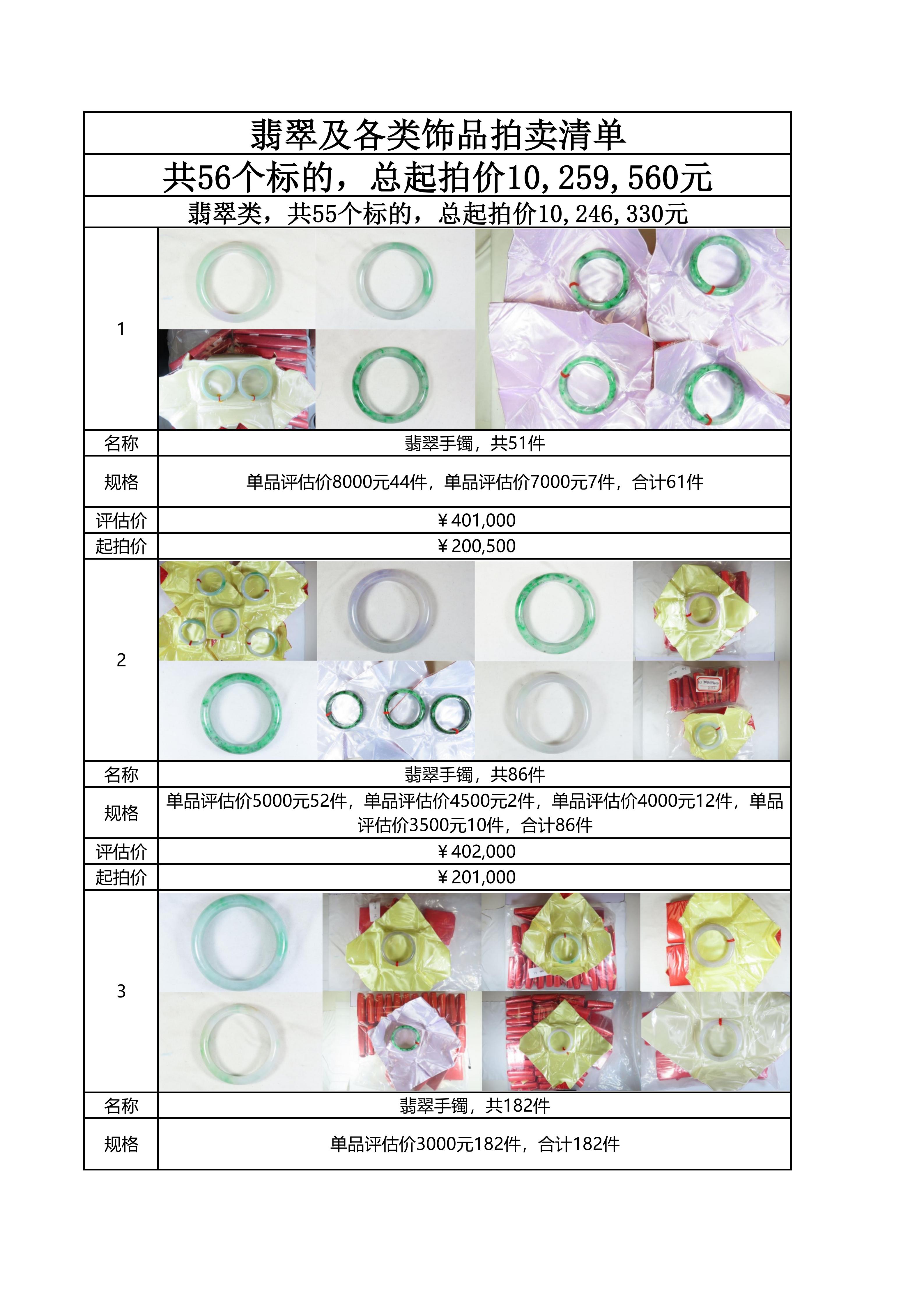 附件:《翡翠及各类饰品拍卖清单》