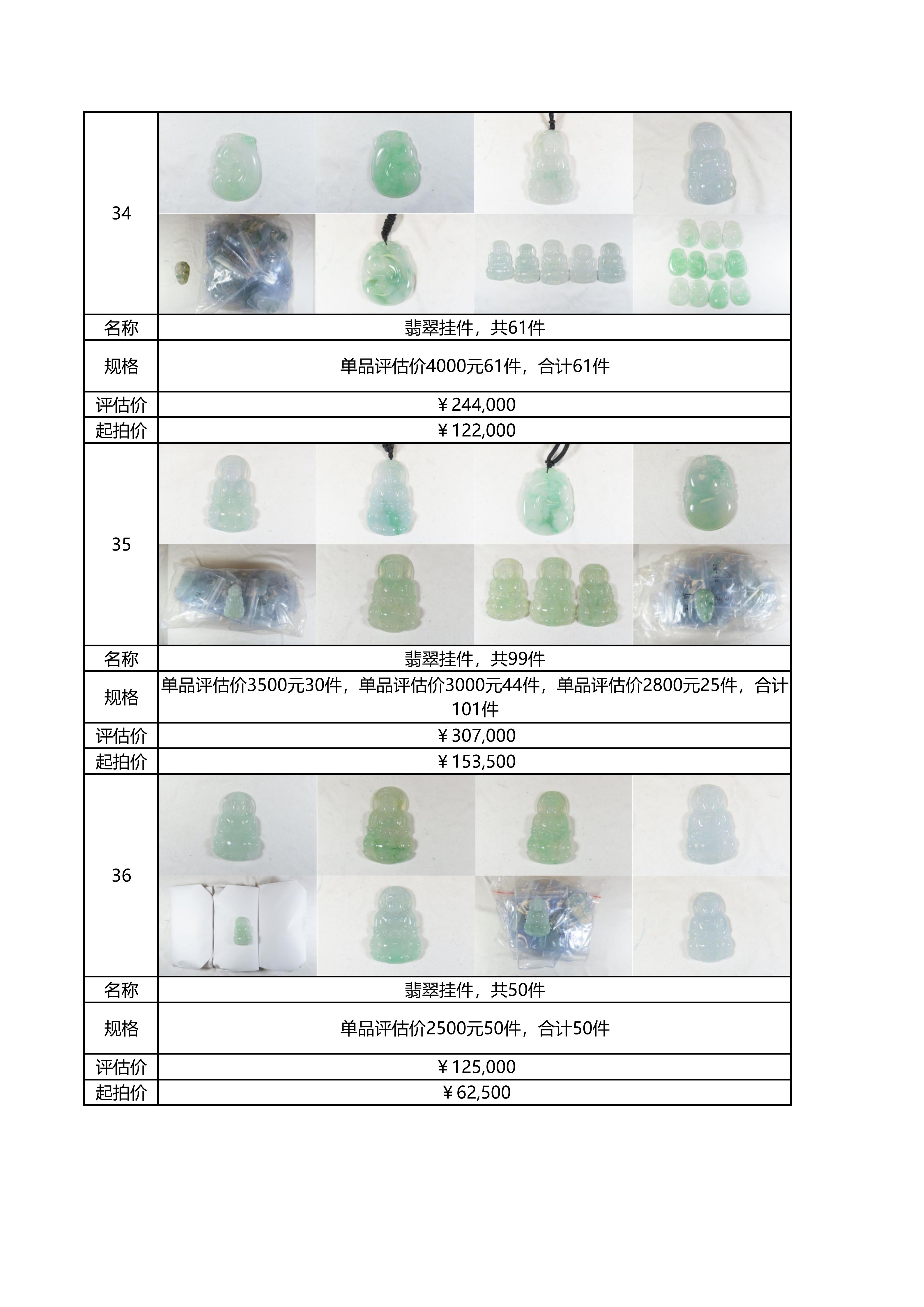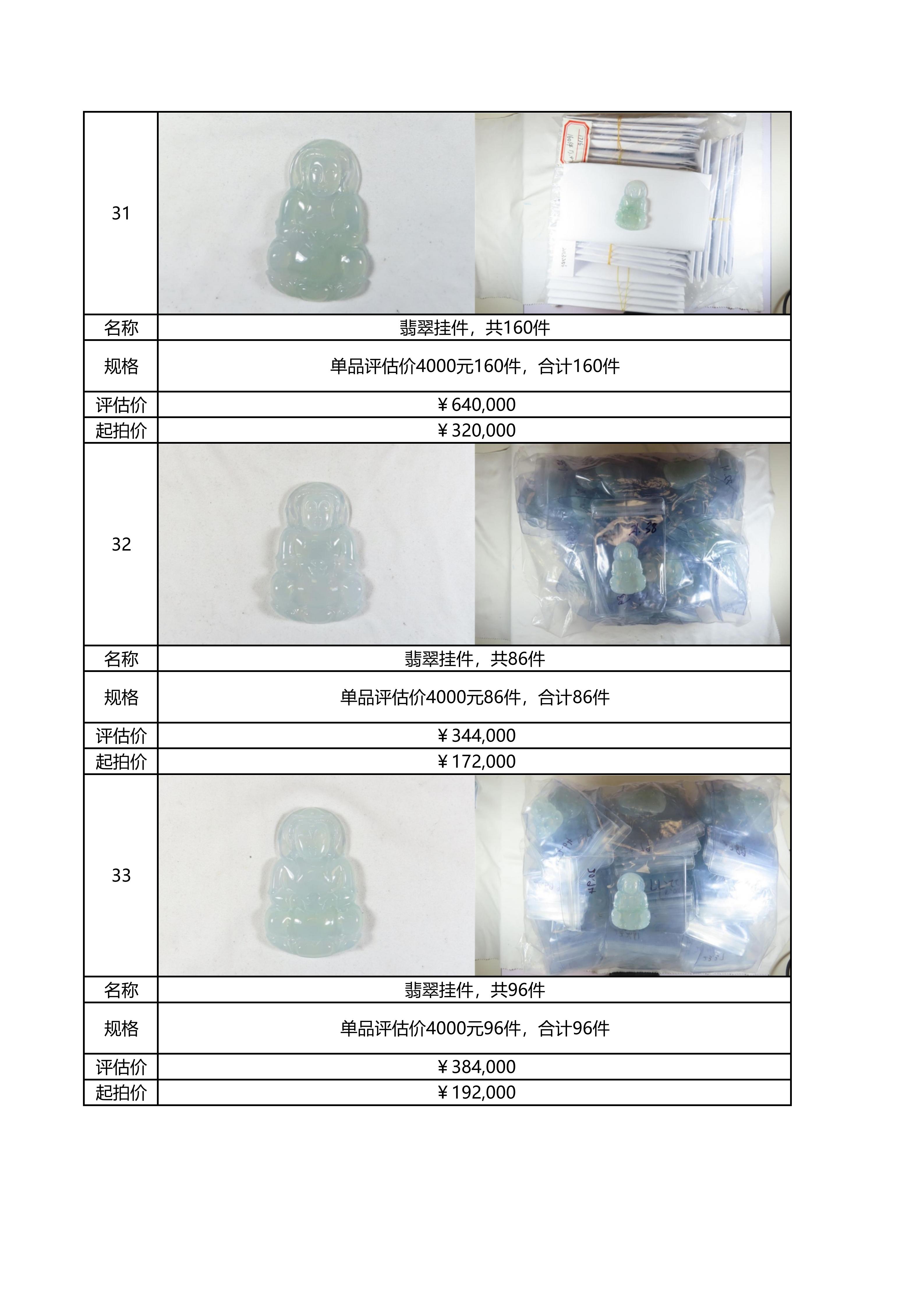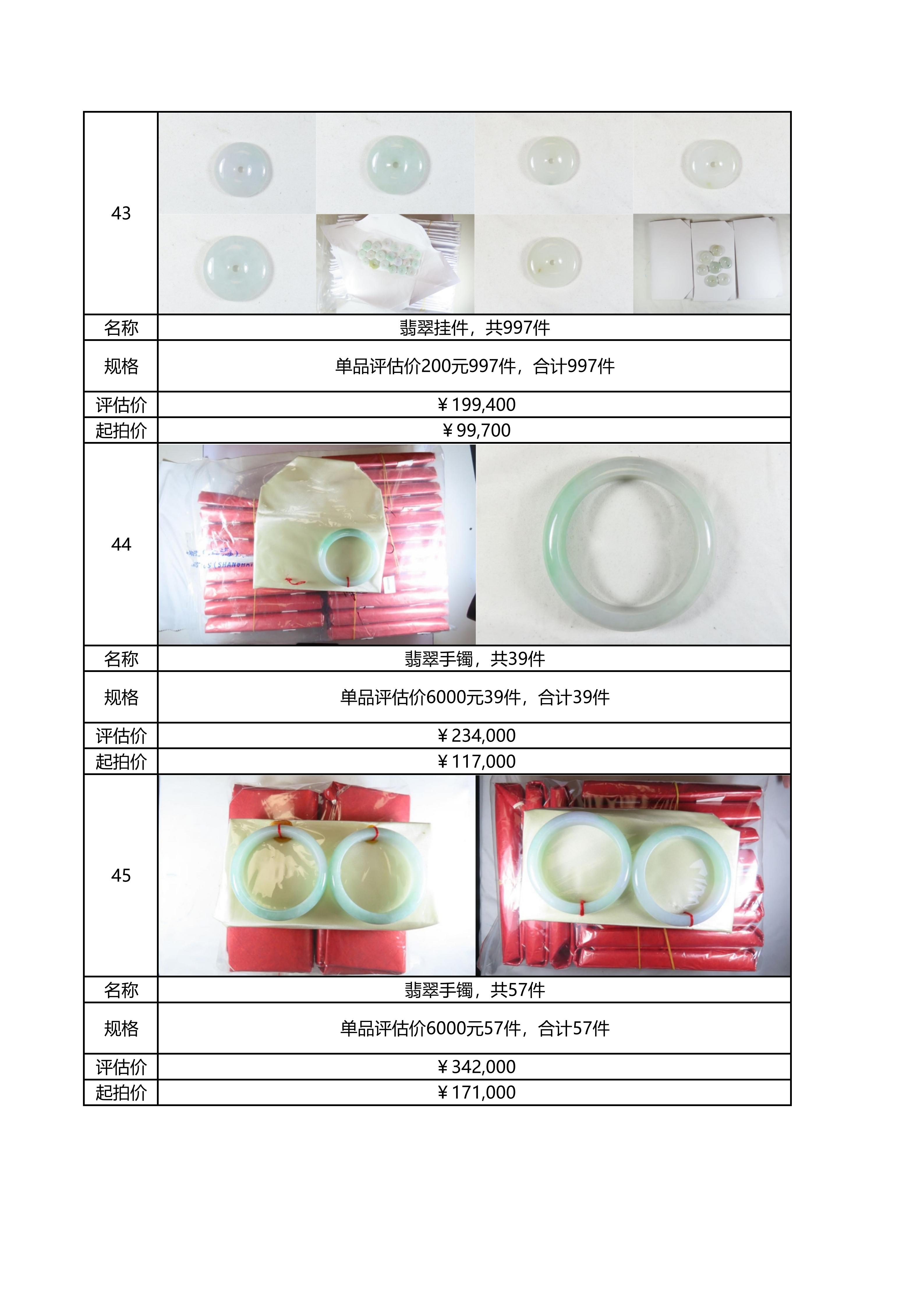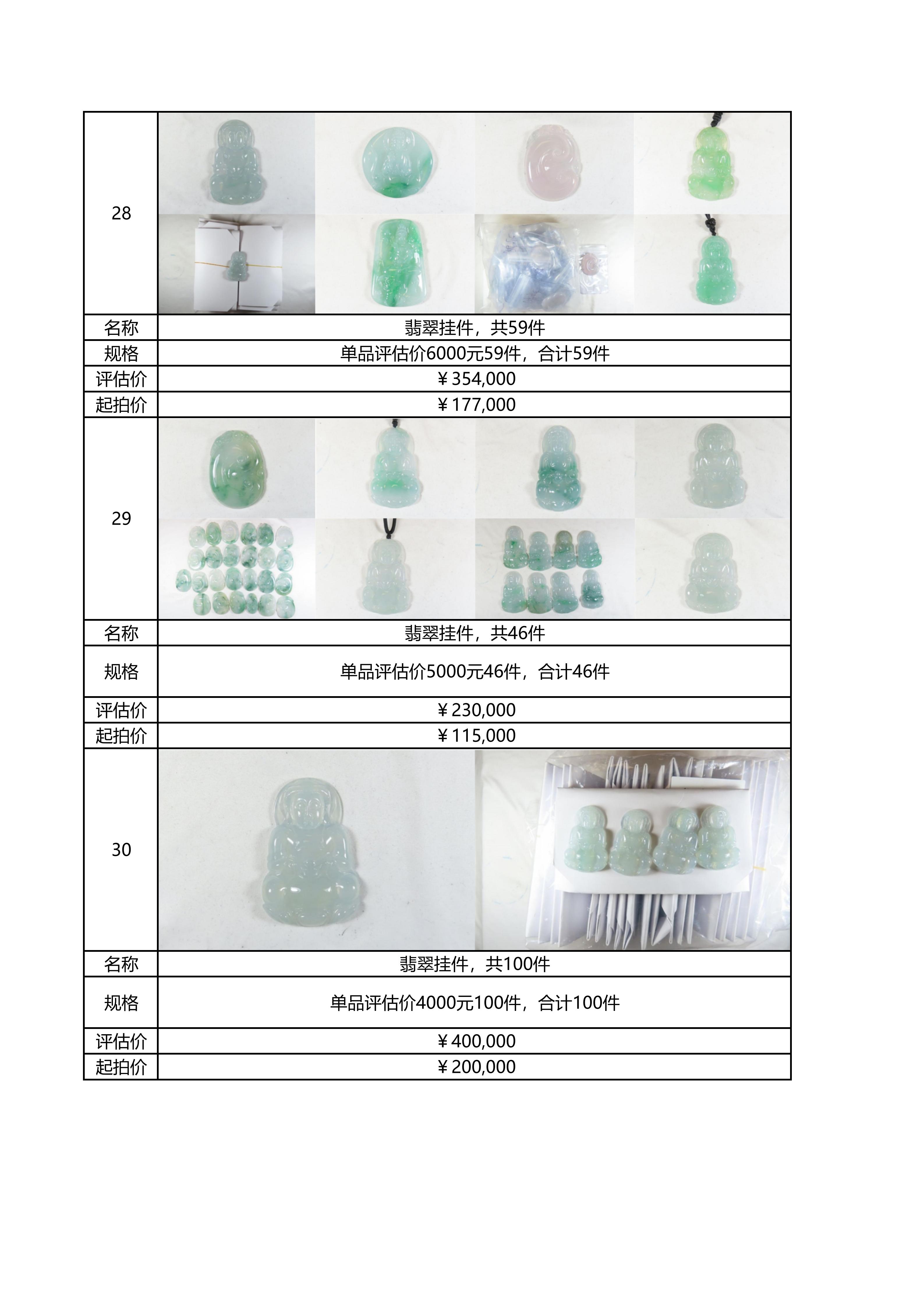 附件:《翡翠及各类饰品拍卖清单》