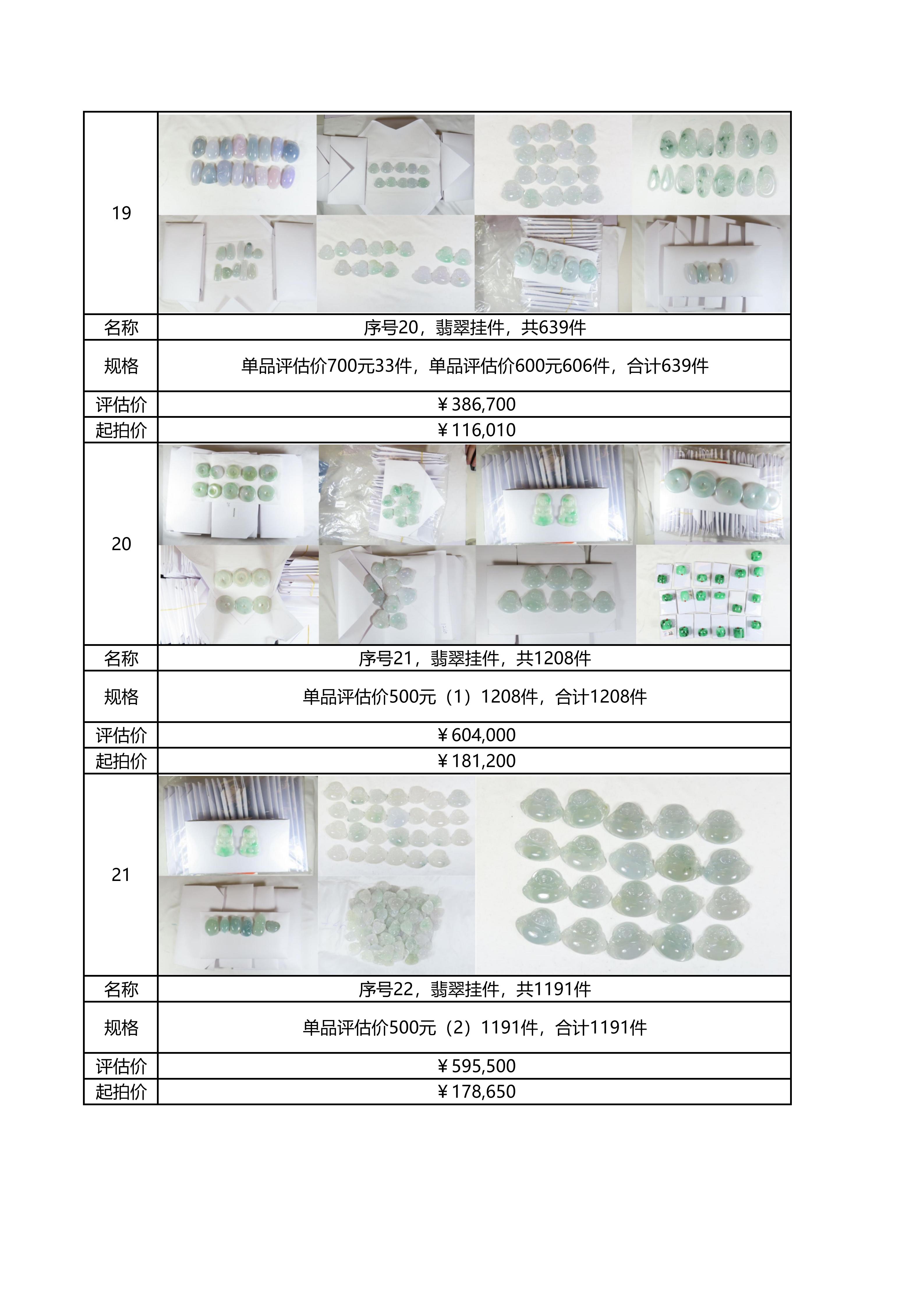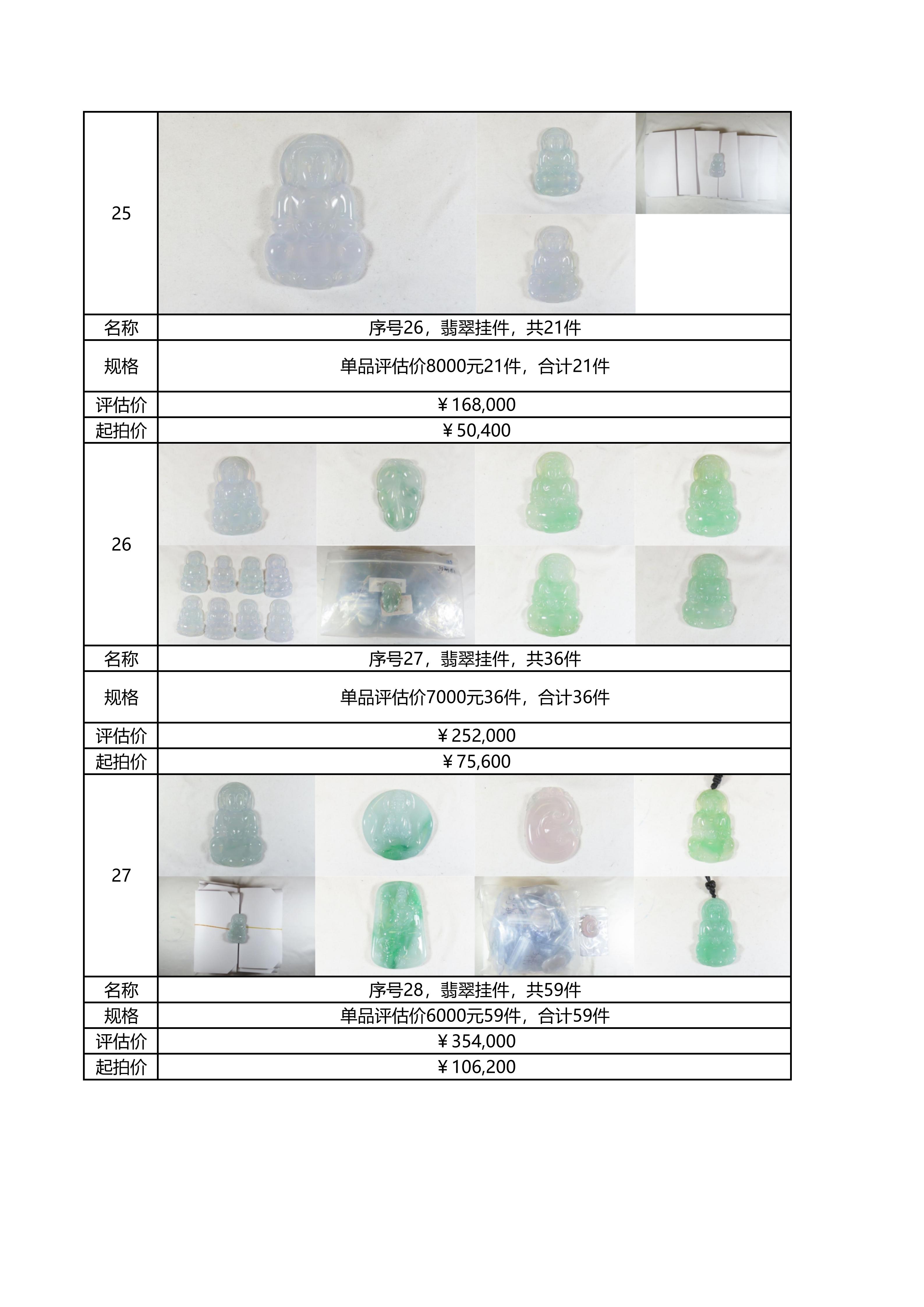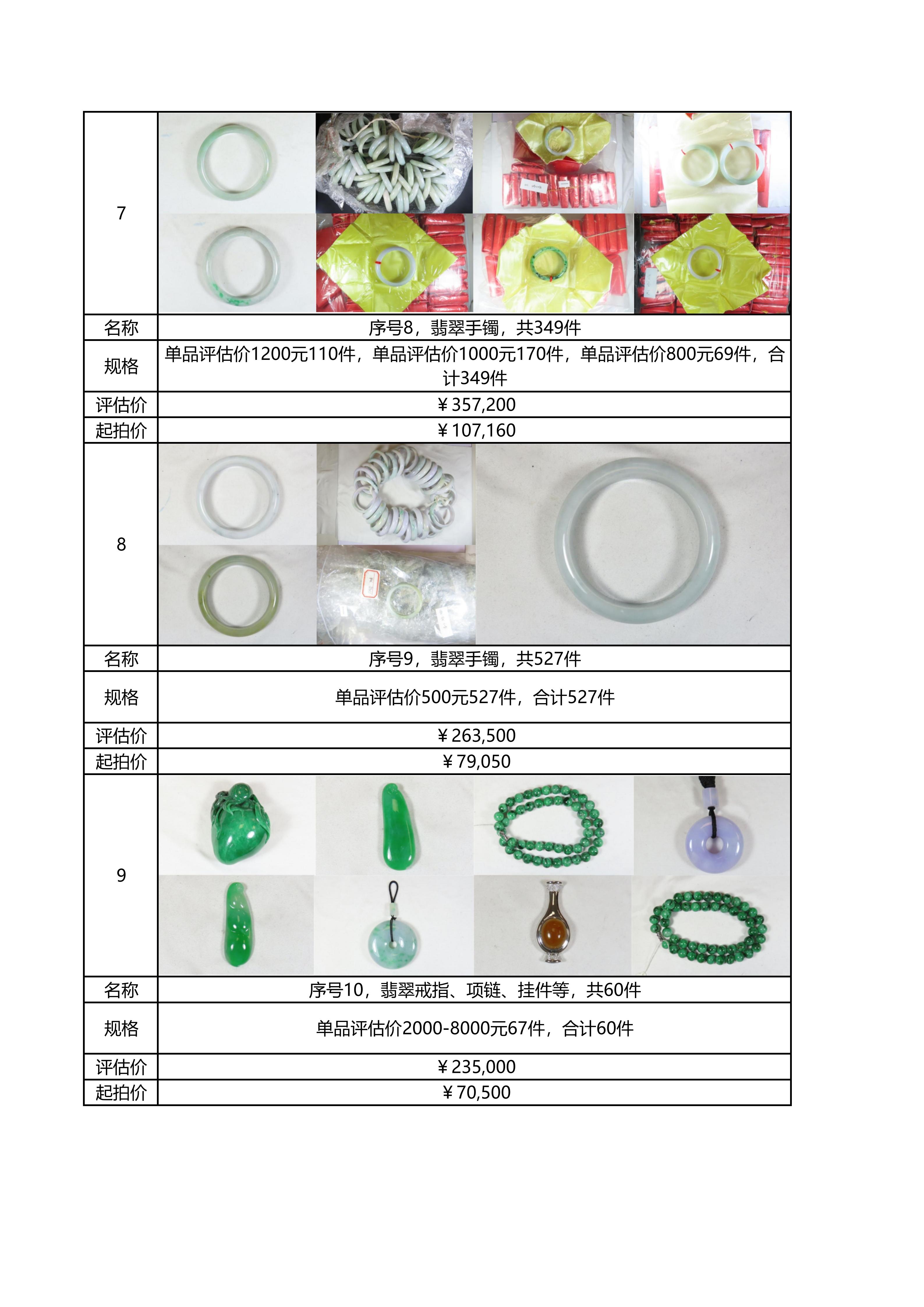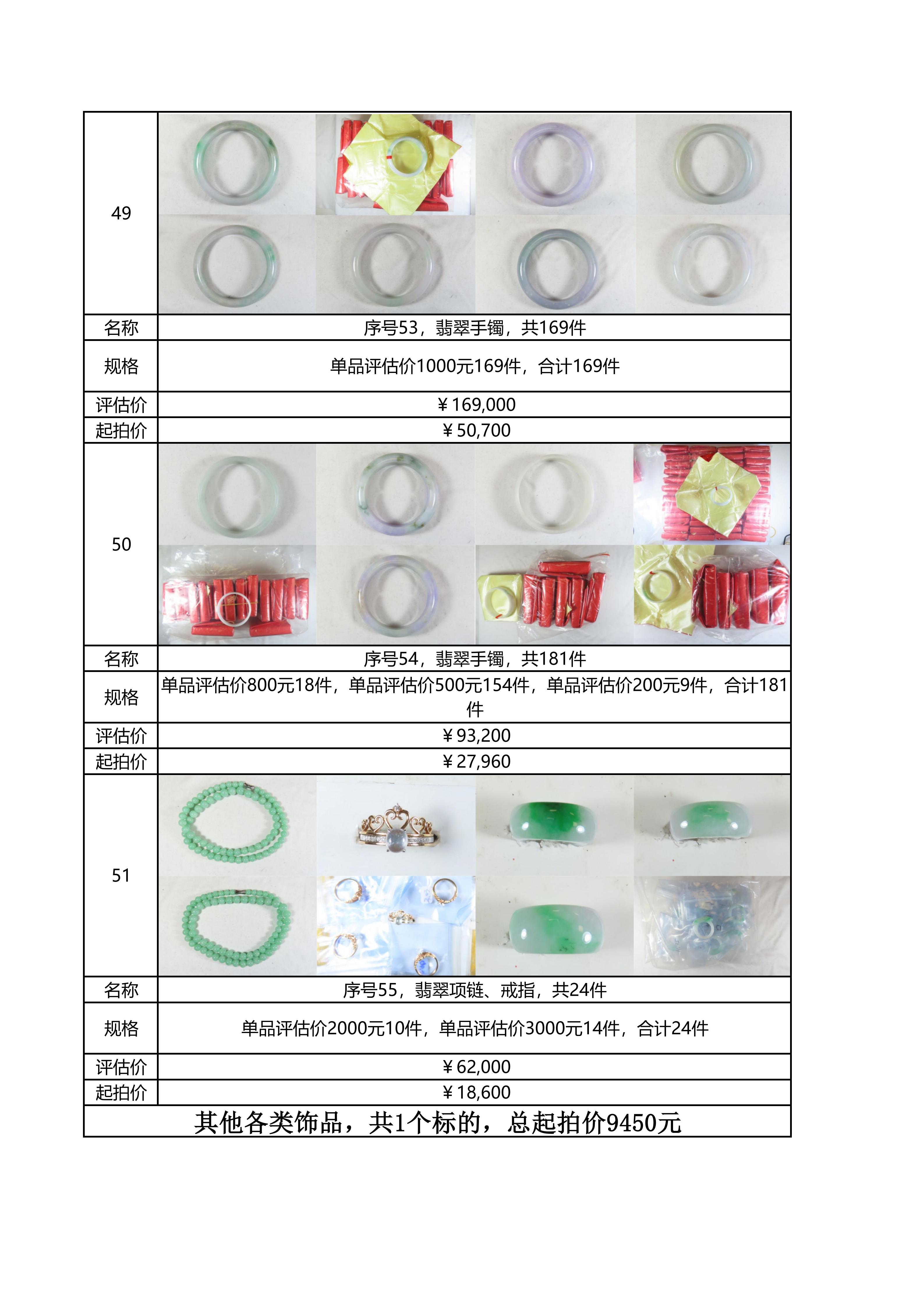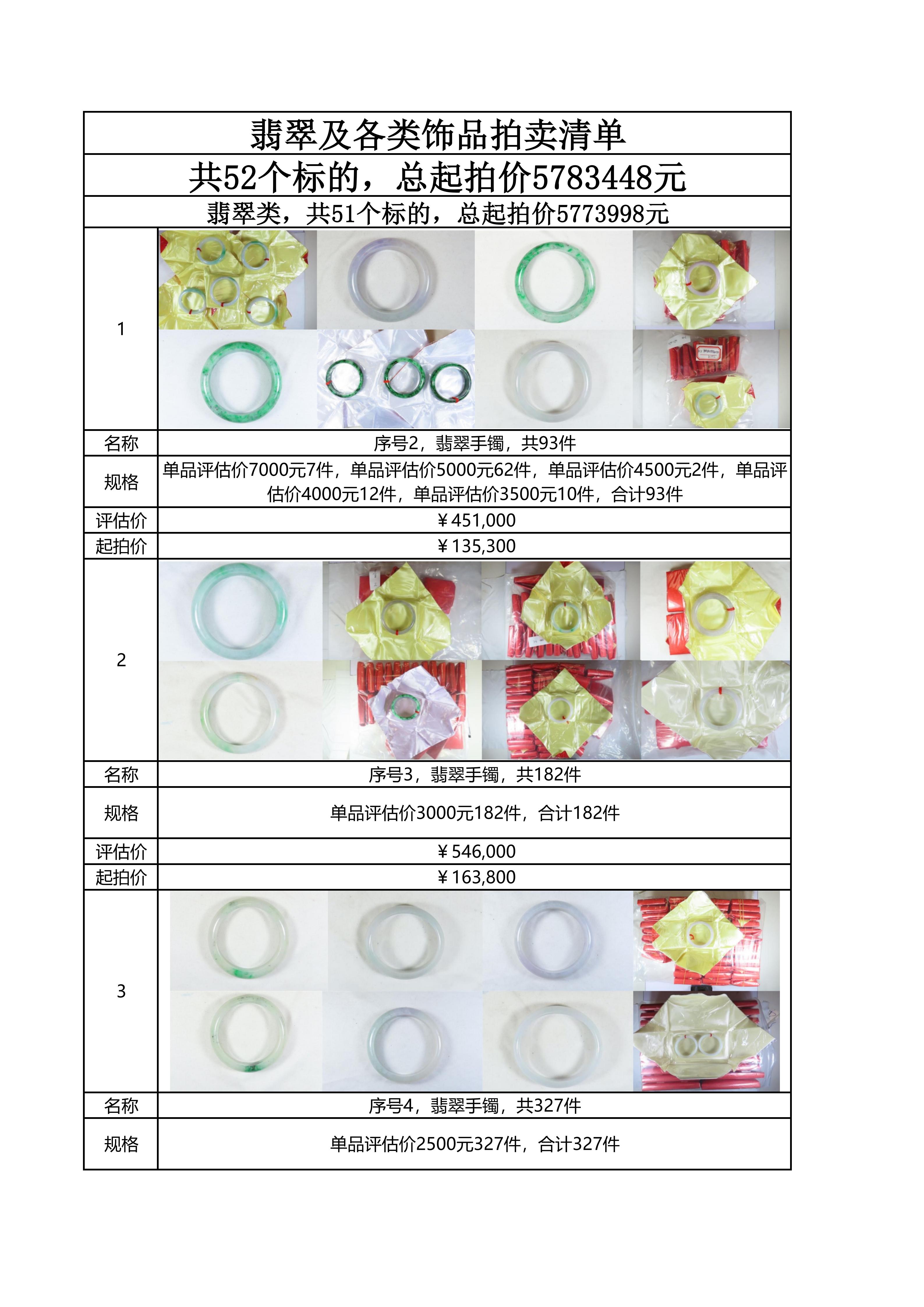 拍卖标的:翡翠及各类饰品,详见《翡翠及各类饰品拍卖清单》