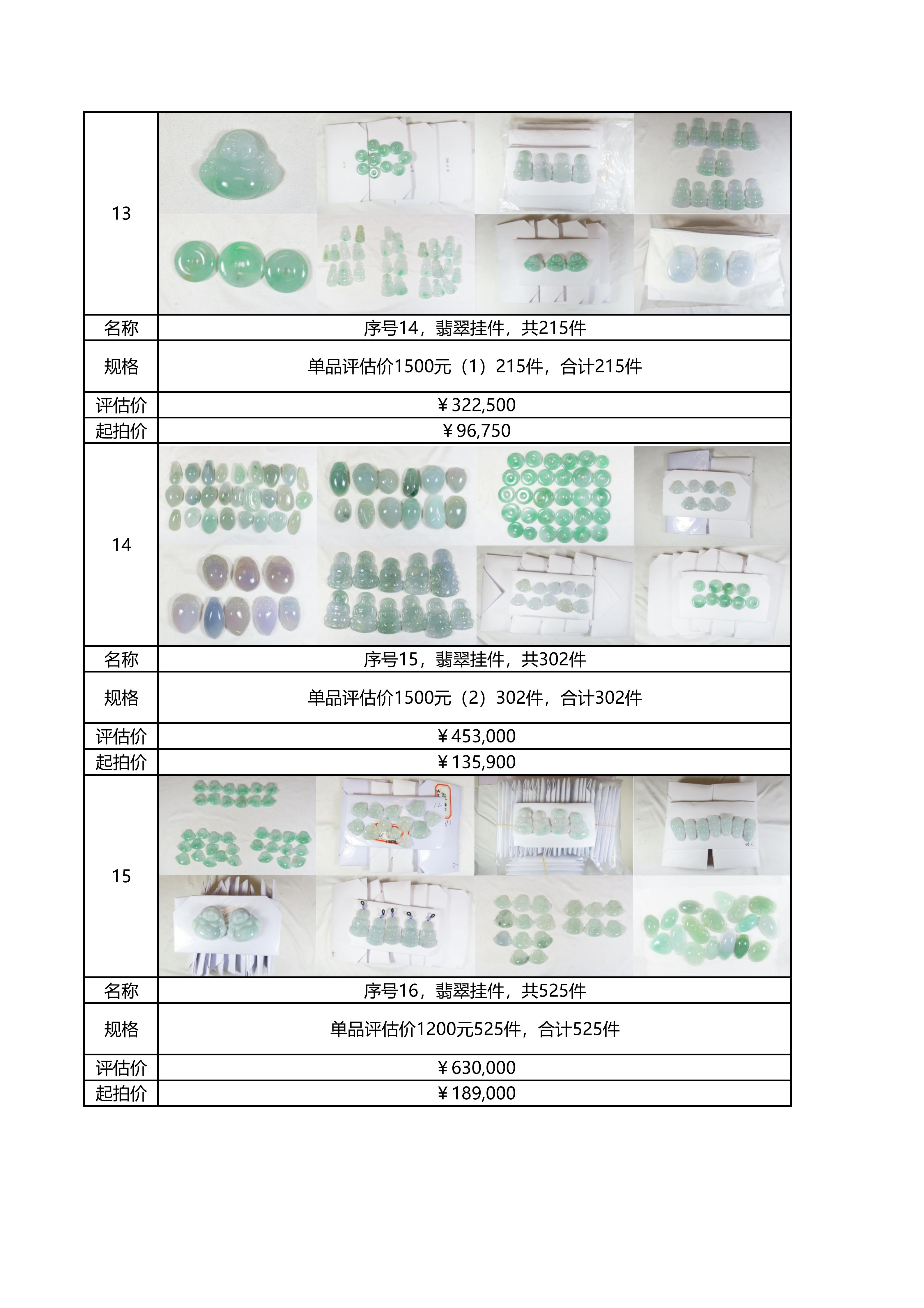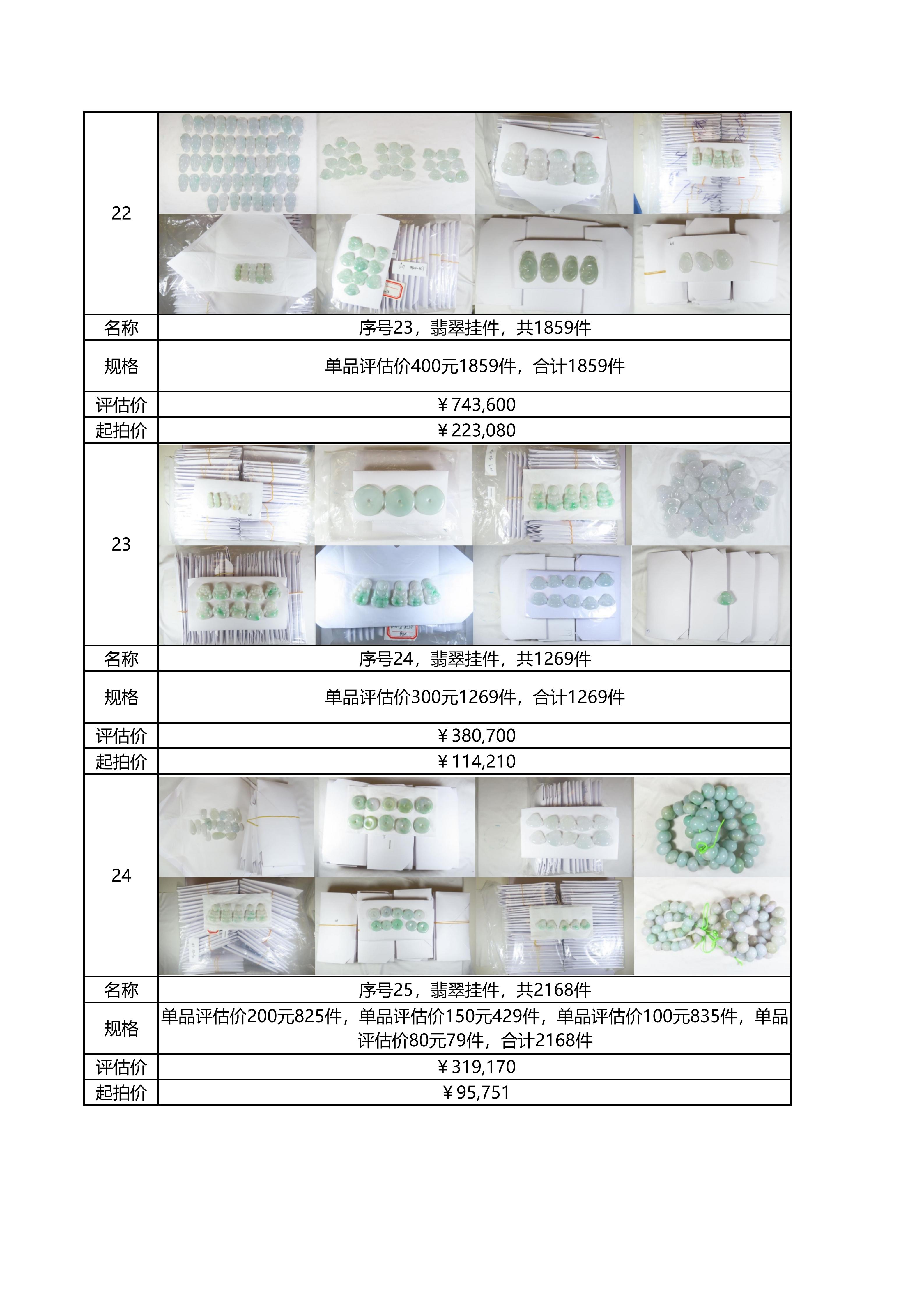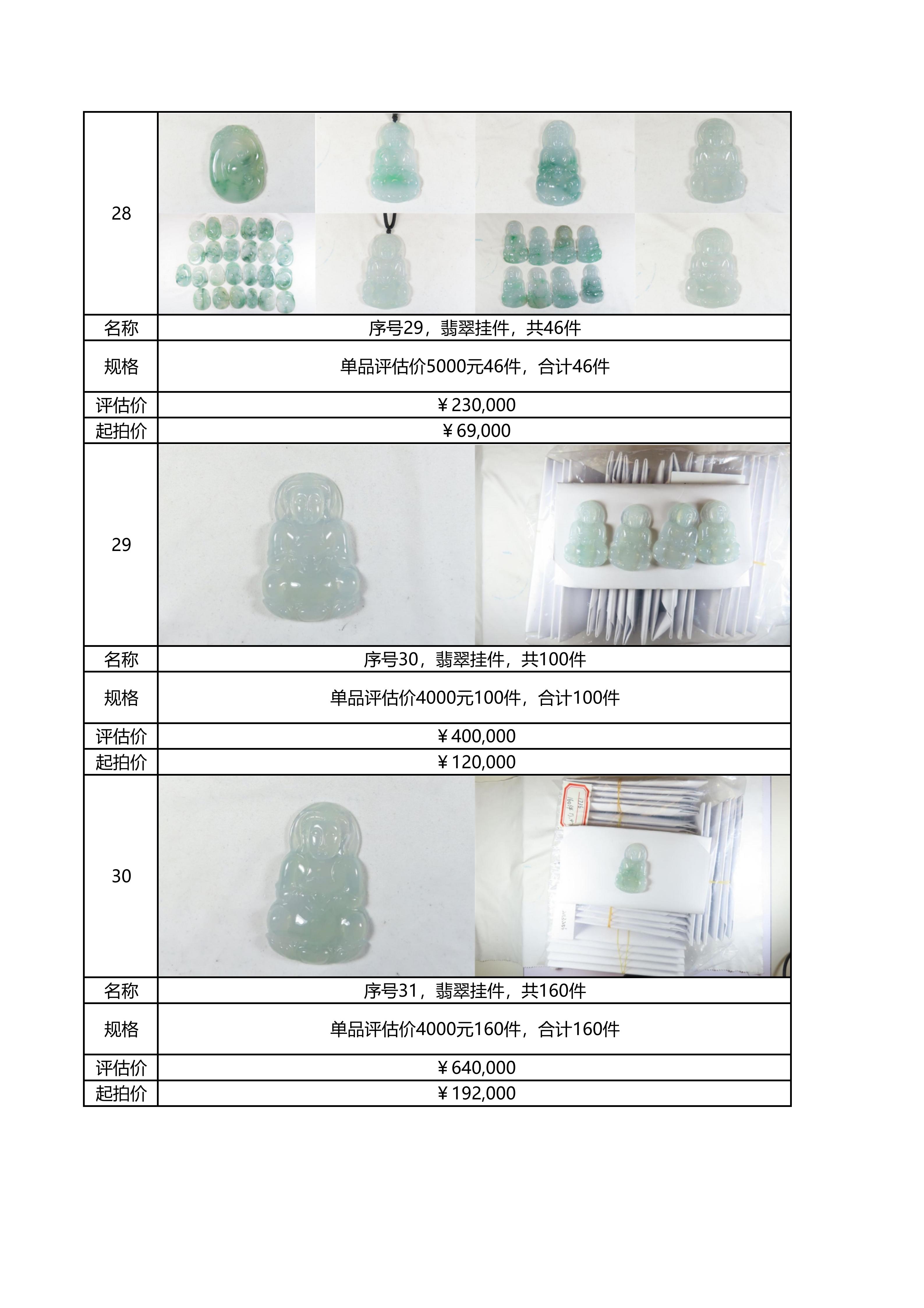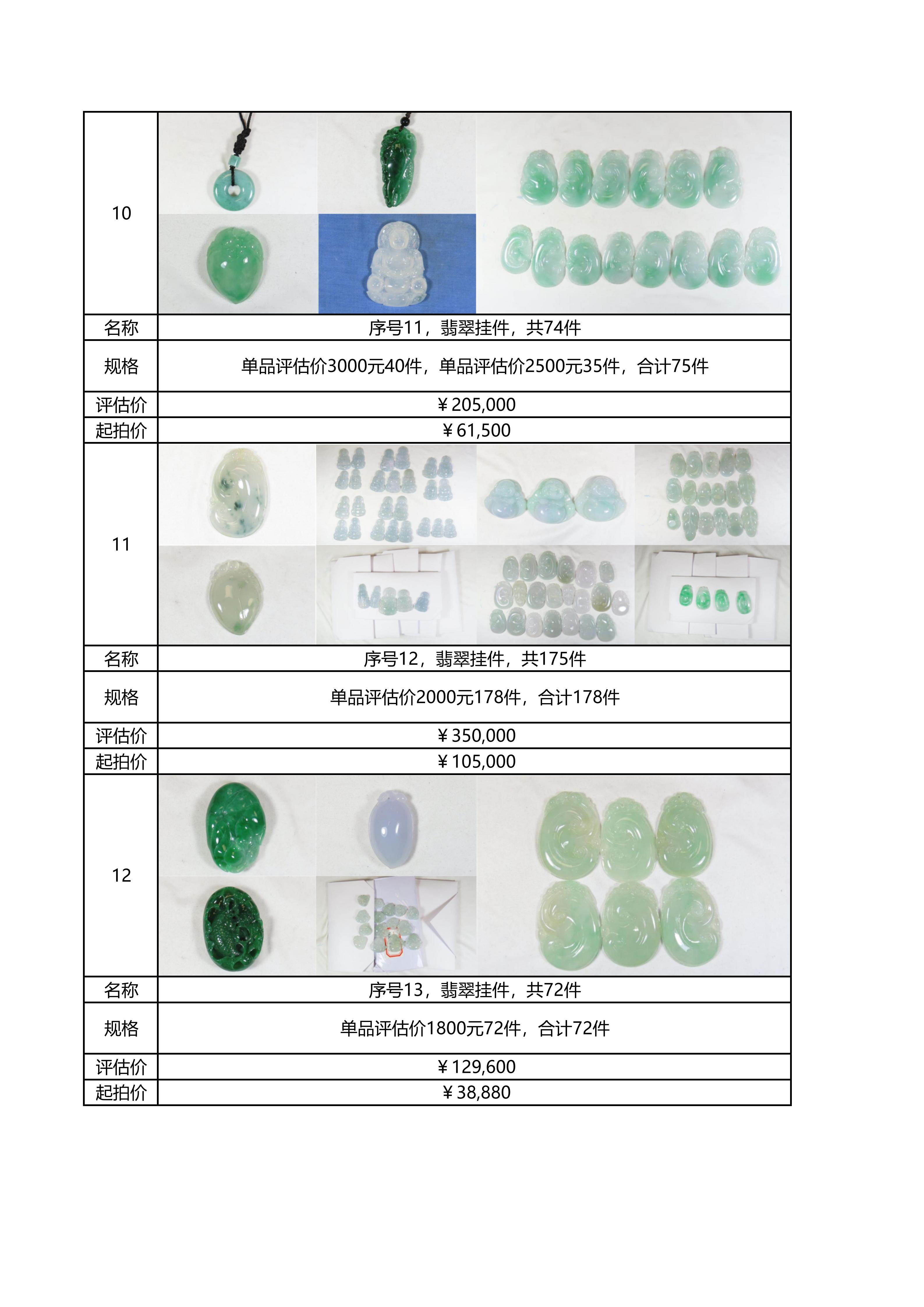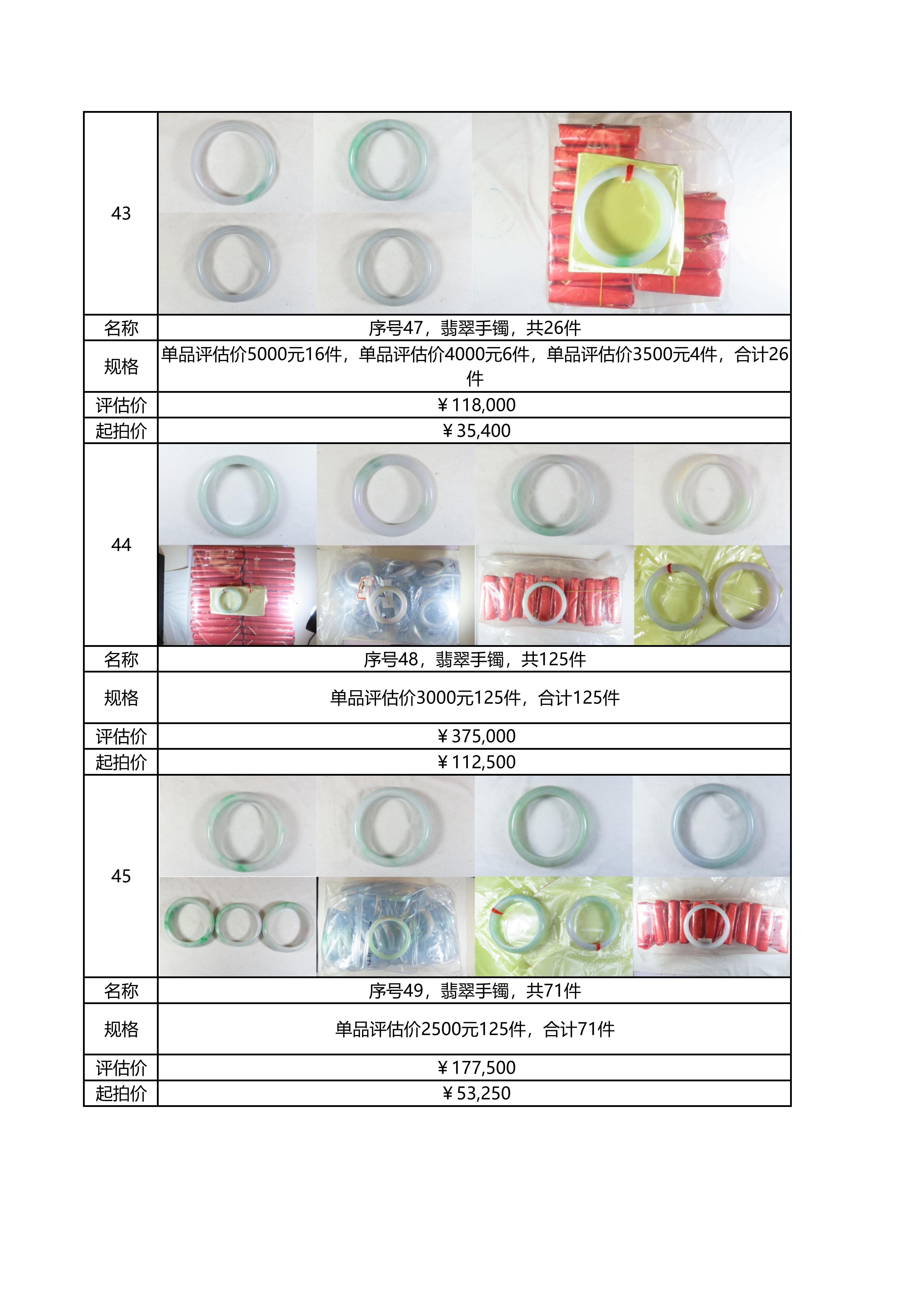 拍卖标的:翡翠及各类饰品,详见《翡翠及各类饰品拍卖清单》