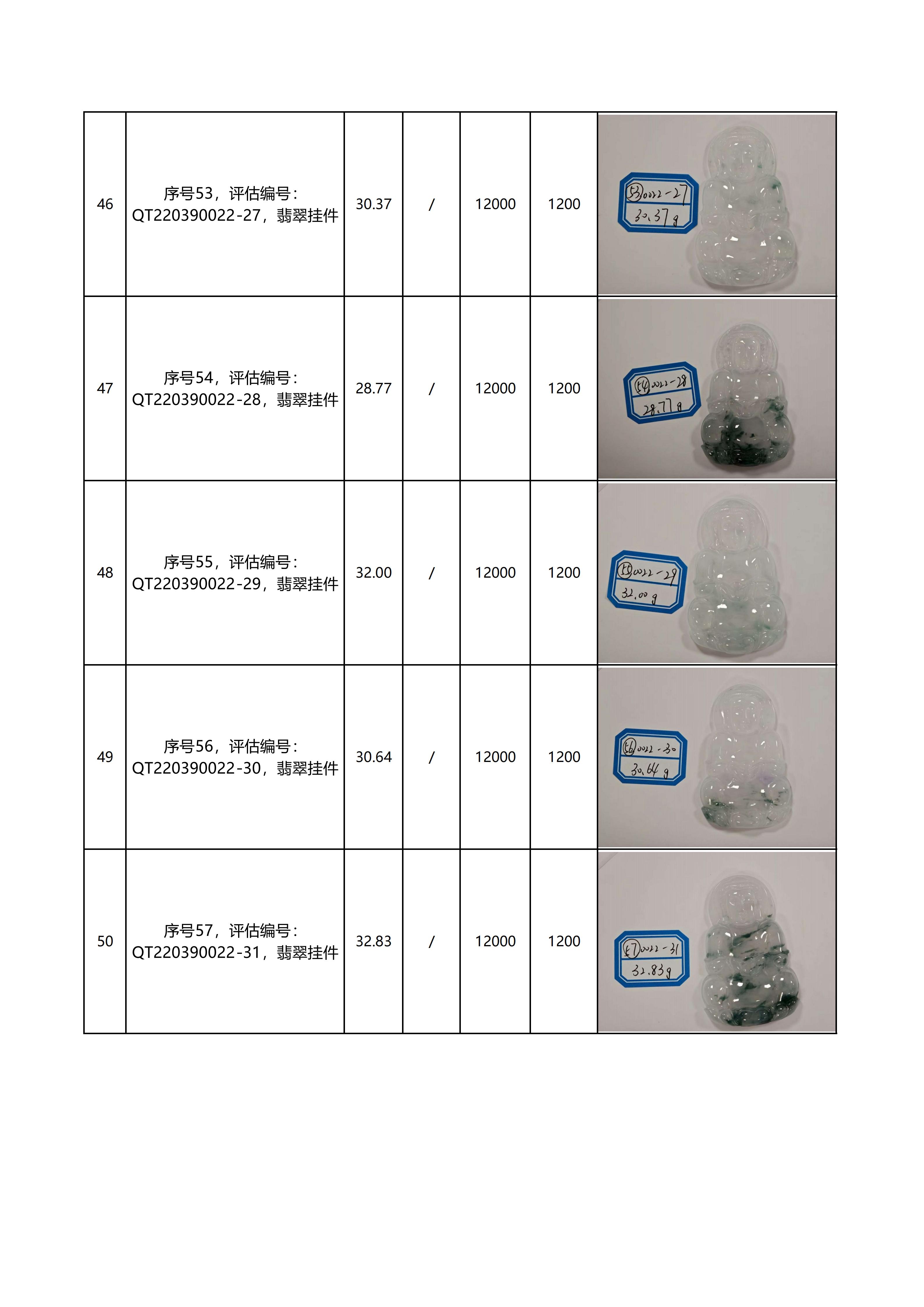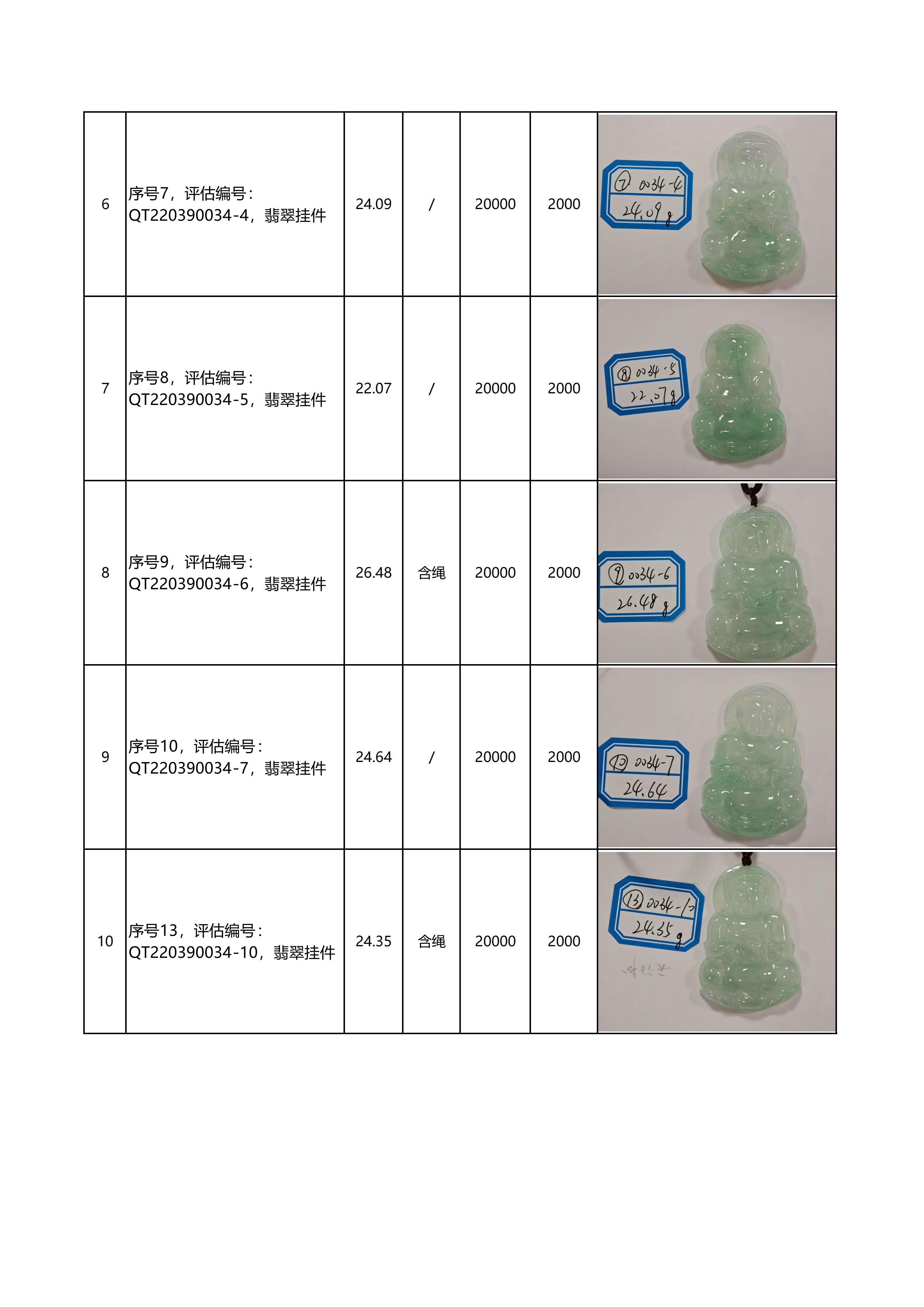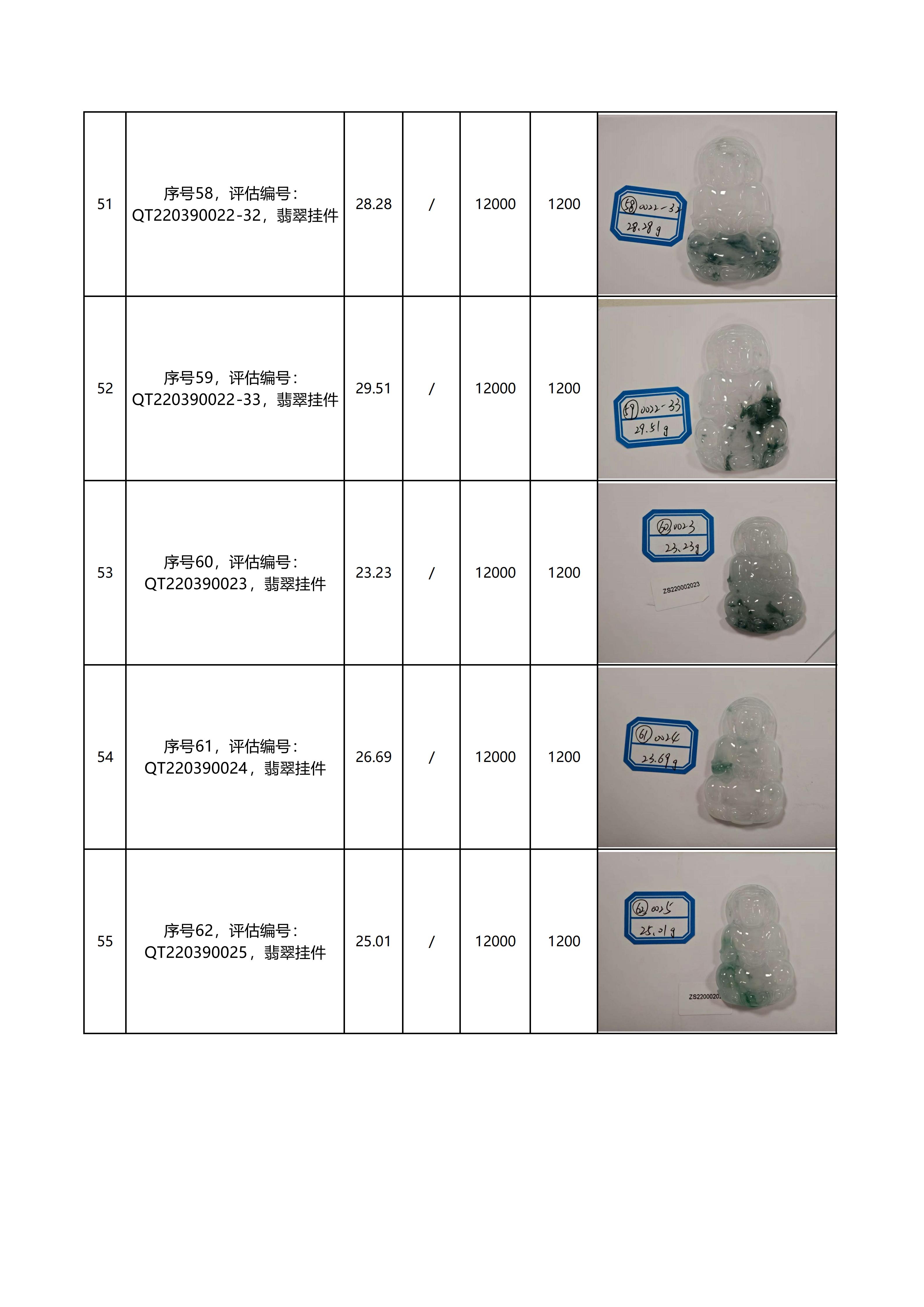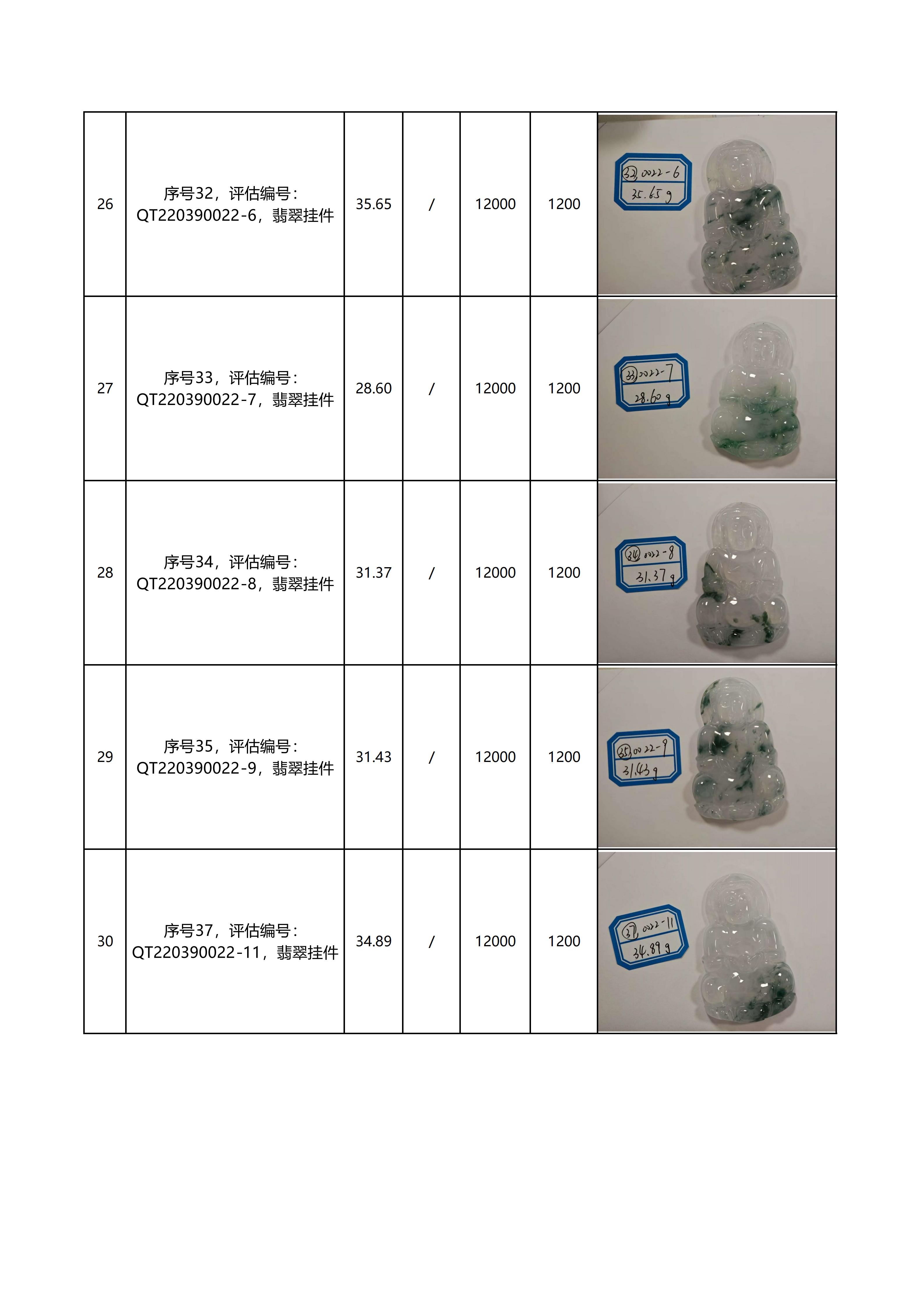 特别说明:本次拍卖的拍品以现场看样的实物为准,拍卖公司对拍品品质和材质不做任何担保和承诺。本次拍品经第三方鉴定机构鉴定全部为翡翠材质,评估价格同样由第三方机构鉴定后给出。但上述鉴定意见及评估价格仅代表第三方意见,与拍卖公司无涉。拍卖公司以远低于评估价的价格作为起拍价进行拍卖,竞拍人需善尽看样义务,自行确认拍品的品质与市场价格。