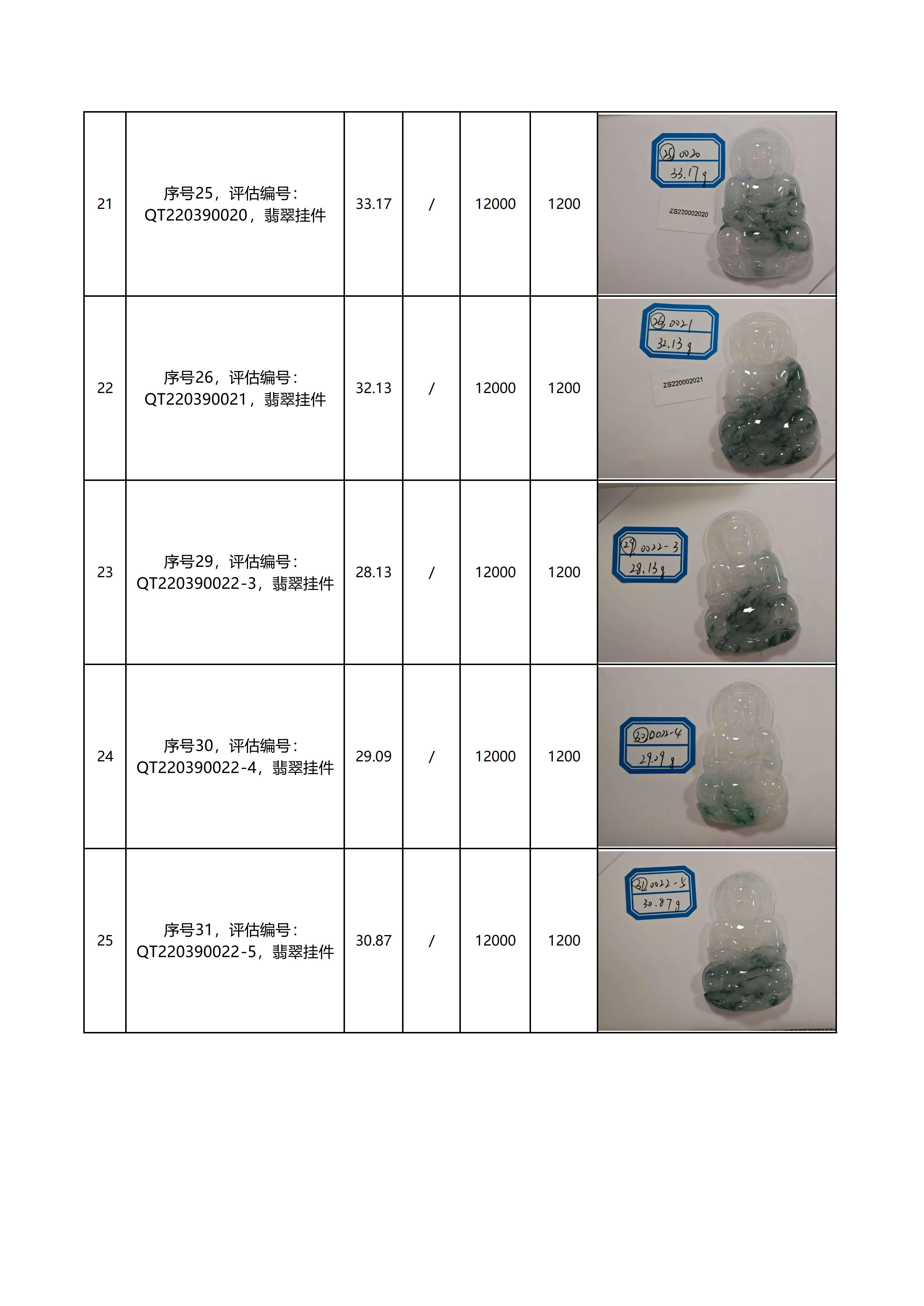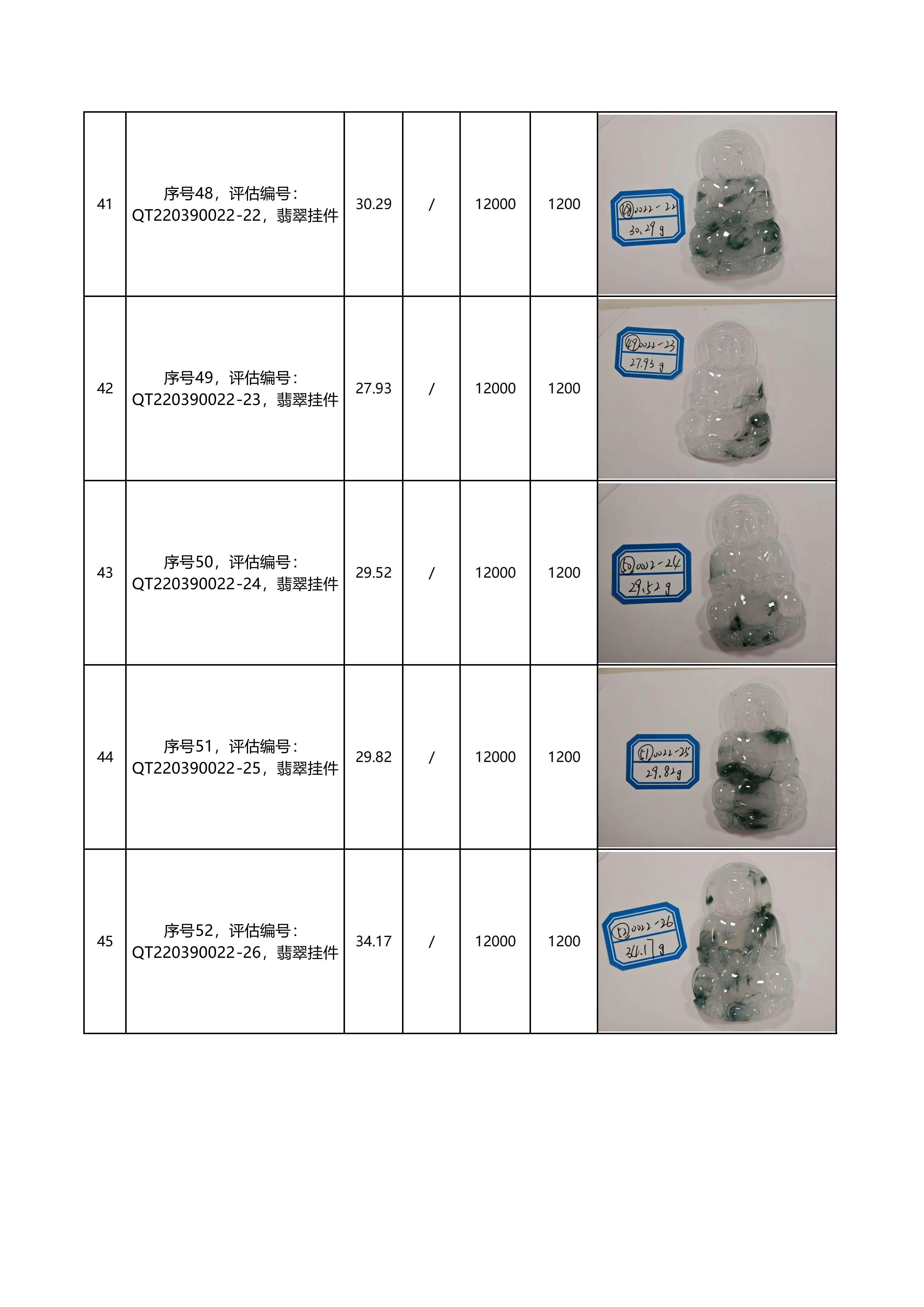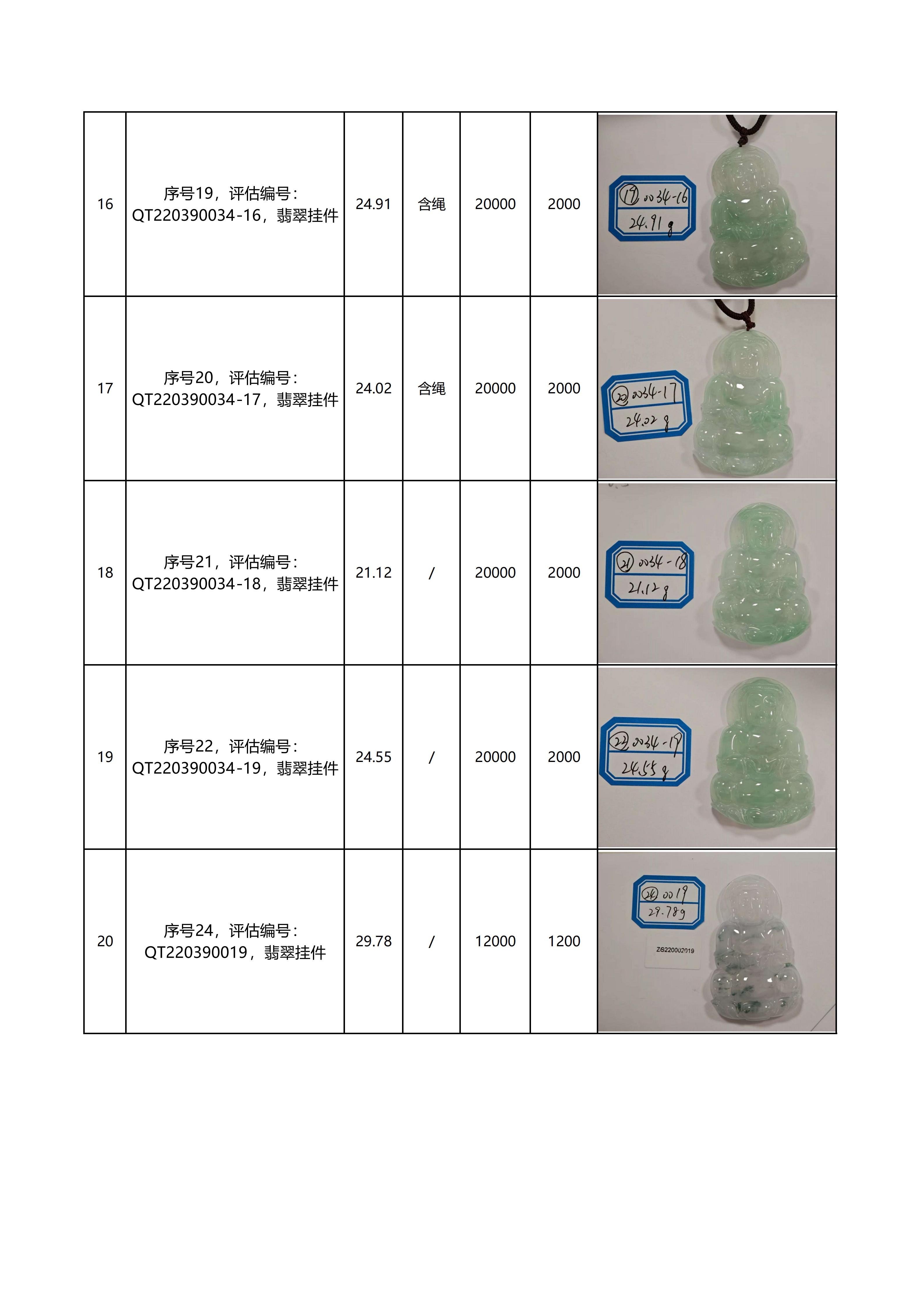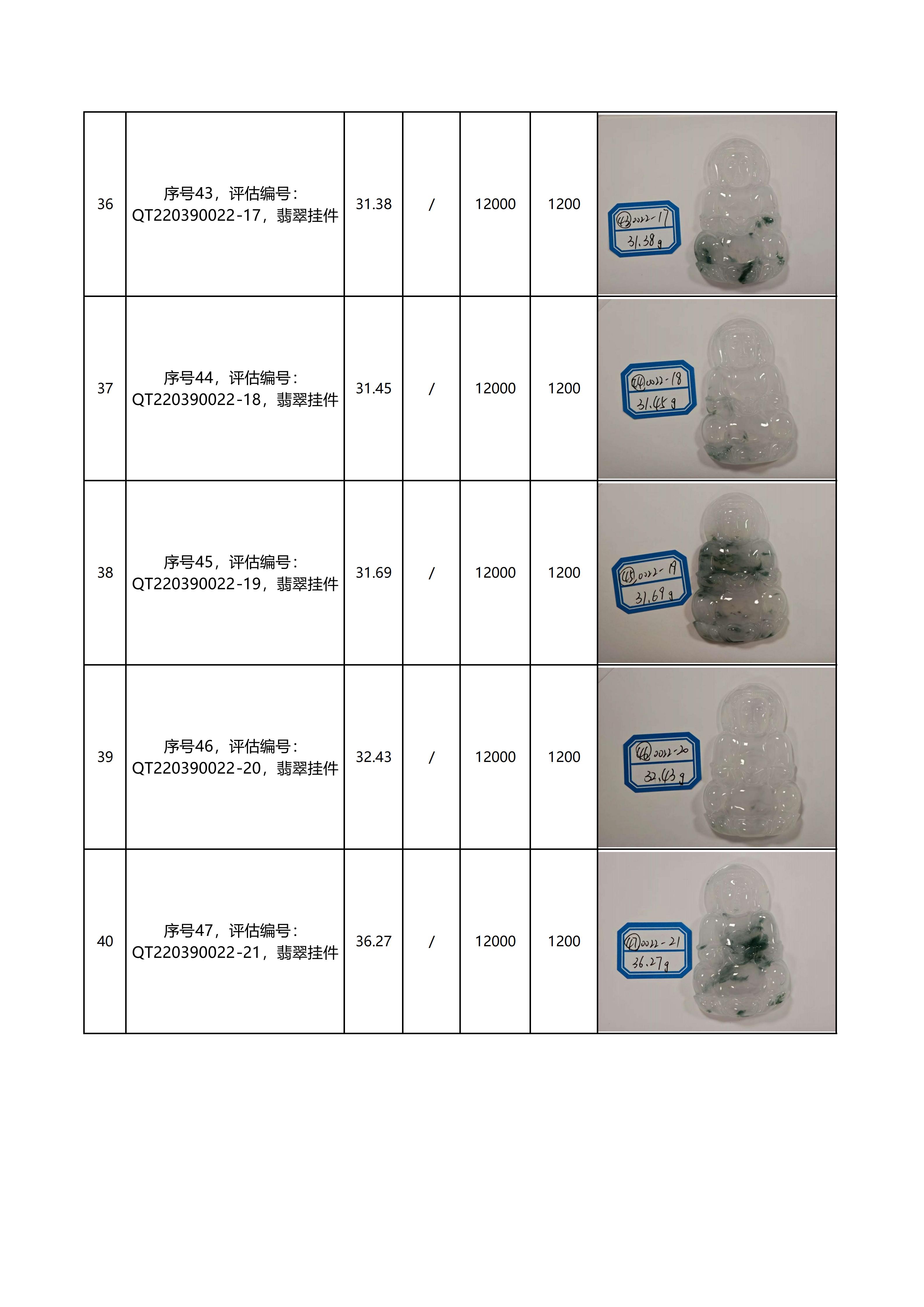 特别说明:本次拍卖的拍品以现场看样的实物为准,拍卖公司对拍品品质和材质不做任何担保和承诺。本次拍品经第三方鉴定机构鉴定全部为翡翠材质,评估价格同样由第三方机构鉴定后给出。但上述鉴定意见及评估价格仅代表第三方意见,与拍卖公司无涉。拍卖公司以远低于评估价的价格作为起拍价进行拍卖,竞拍人需善尽看样义务,自行确认拍品的品质与市场价格。