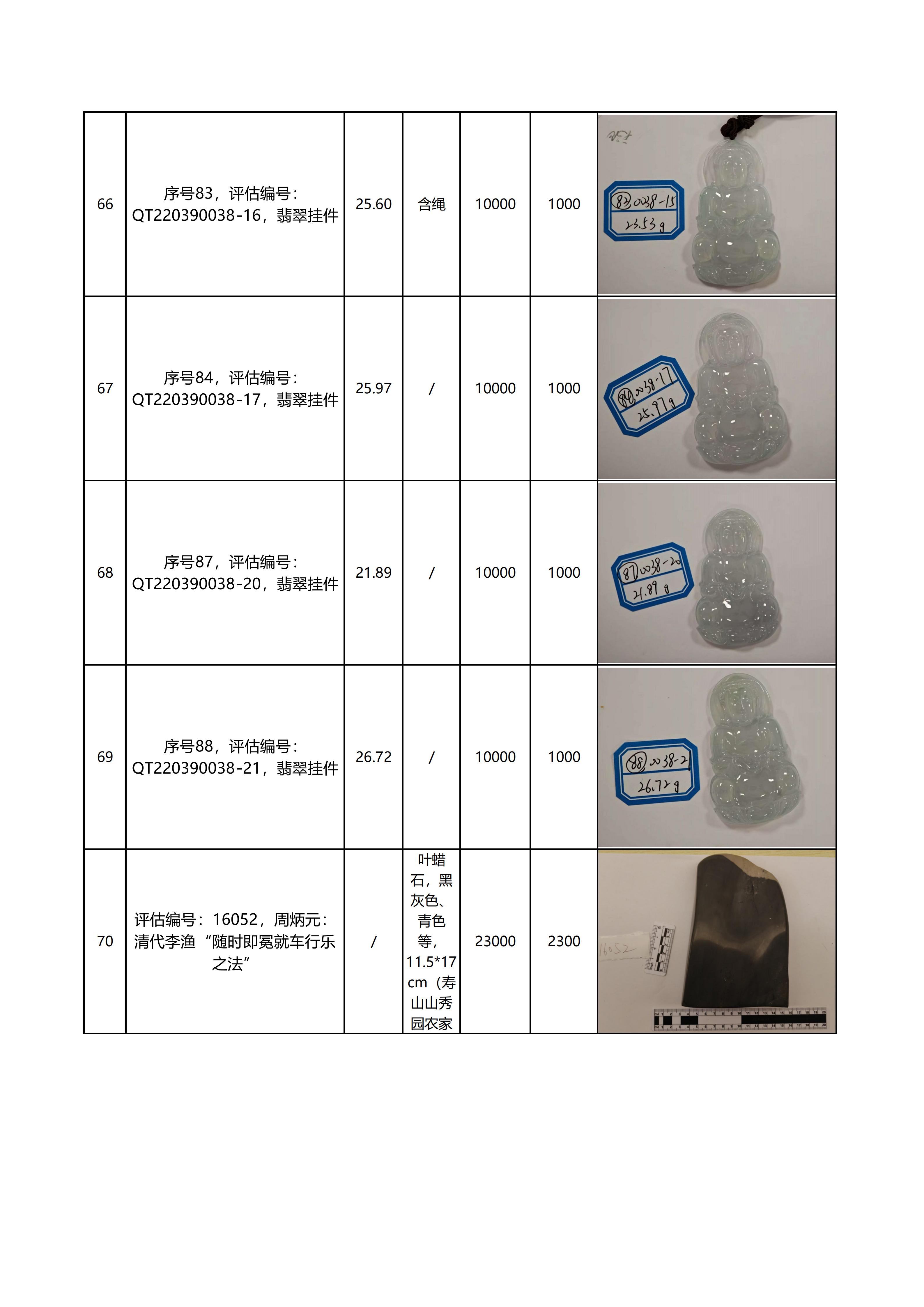 本次拍卖标的为70个翡翠饰品标的,详见《翡翠饰品拍卖清单》,并在“诚拍网”(www.chengpw.com)上下载。