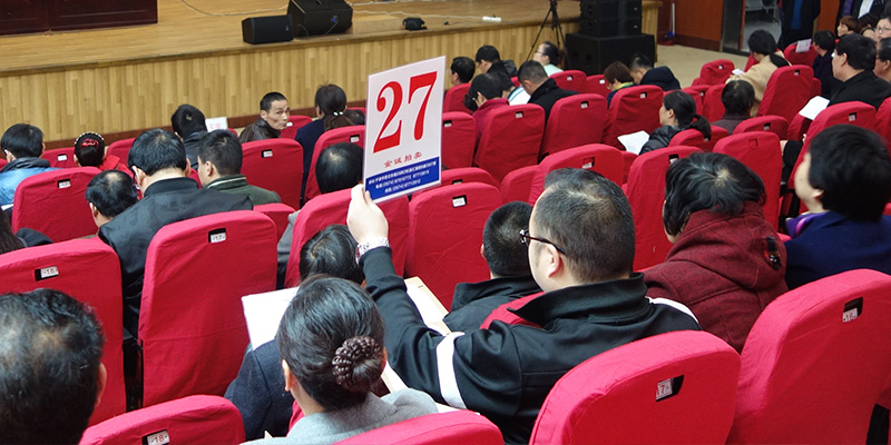 竞拍者都十分认真的跟着拍卖师的节奏,等着自己心仪的房屋拍卖。